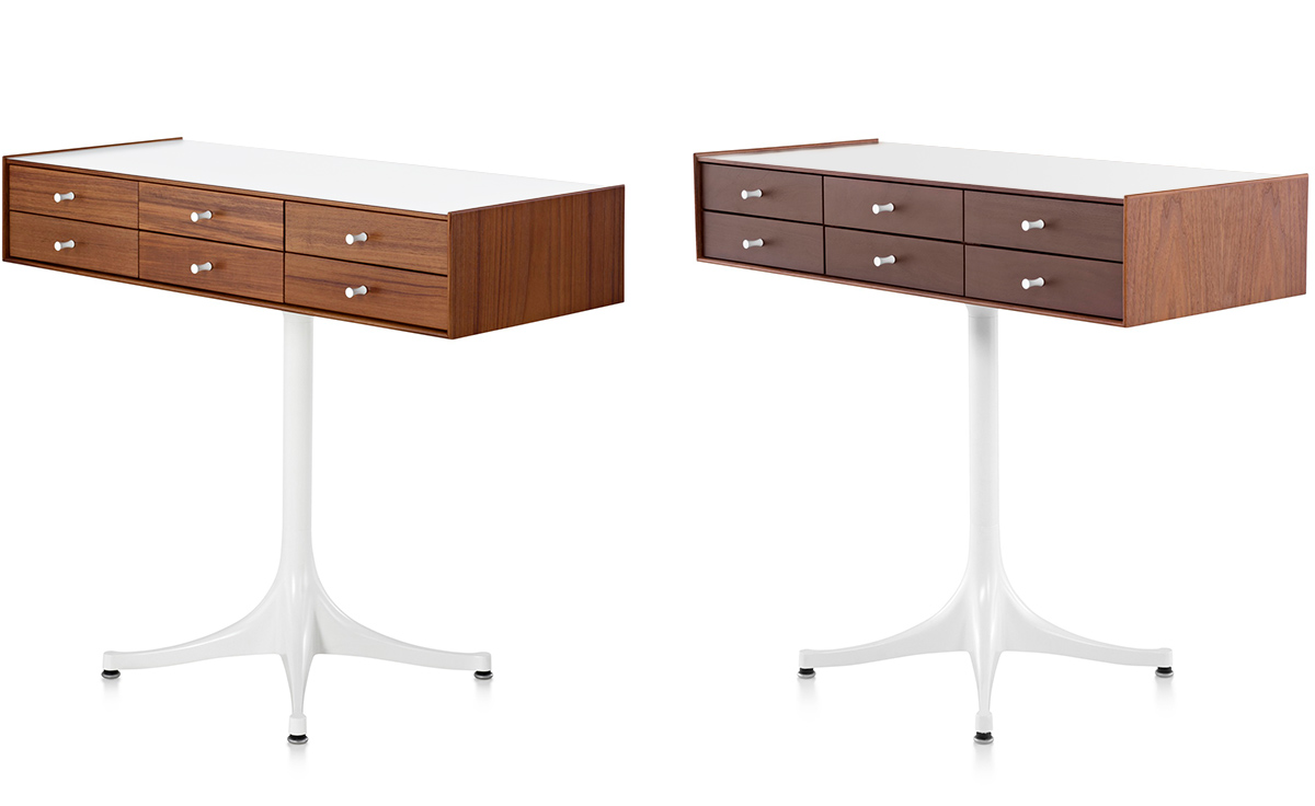 乔治·尼尔森(George Nelson)是美国极具影响力的建筑师、家具设计师和产品设计师,日本对George Nelson有着深远的影响。在他于1951年第一次到东京旅行,以及之后在那里的十几年,George Nelson迷上了日本的所有东西。这种影响最明显的的他于1952年设计的迷你箱。迷你箱的神奇处是可用来存放各种物品,是一个很多小抽屉小储物柜,方便您分类摆放各种生活物品。尼尔森设计的迷你箱最让人惊奇的是它几乎可以摆放在任何房间,无论是卧室,办公室,客厅等等任何您需要的地方,美观且不失和谐。每个抽屉都是木工们细心的安装设计,以保证高品质。抽屉采用胡桃或樱桃木皮贴面,基材为环保高密度板环保油漆喷涂、铸铝烤漆可调节脚架(4星级铝底座)、或玻璃钢一体成型脚架,抽屉贴心的配置有金属旋钮,方便打开与关上。