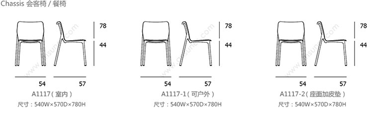 Chassis chair 系列尺寸/示意图