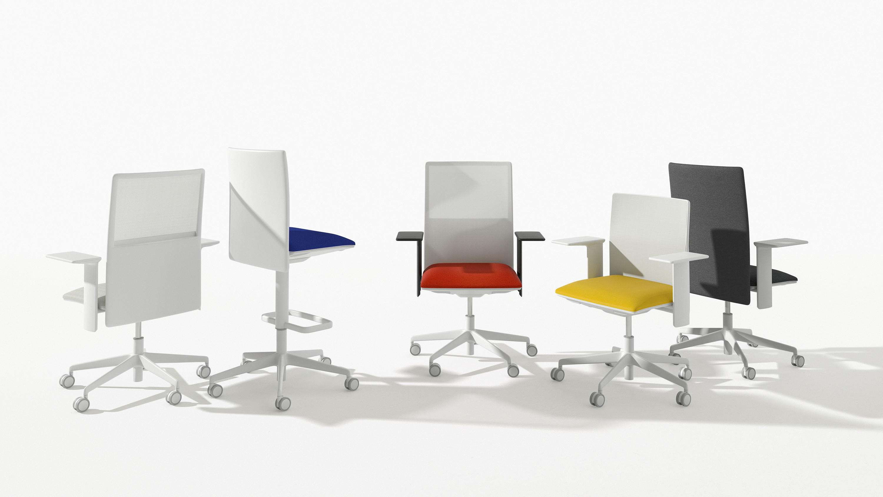 保护性的靠背提供两个高度的庇护和保护:低姿态的会议室和会议室,高创意工作空间。两种高度都有网格或可定制的室内装饰,有或没有3D扶手。为了获得最佳的舒适度,引人注目的扶手可以进一步指定为小或宽的宽度,作为小型平板电脑或智能手机的支持。