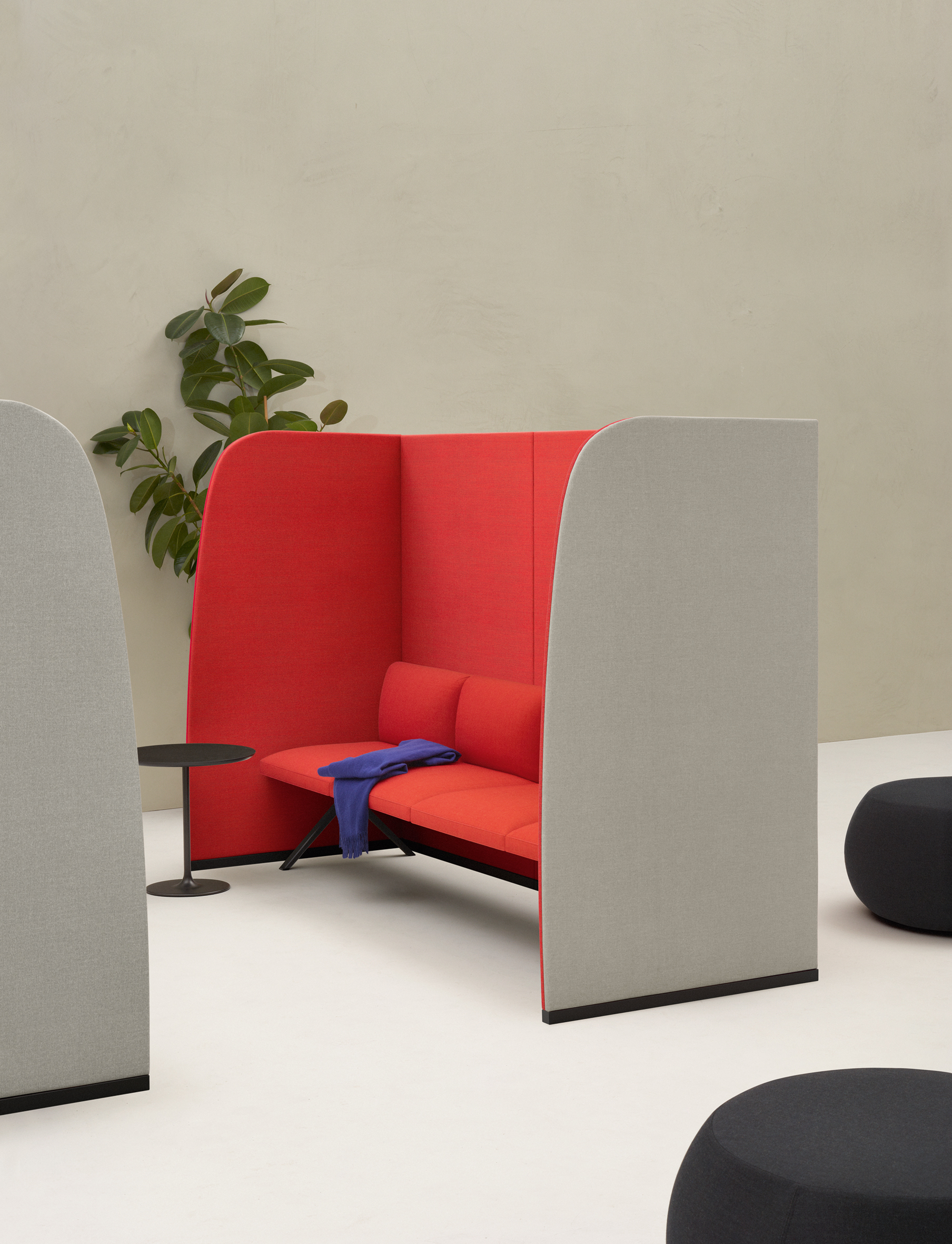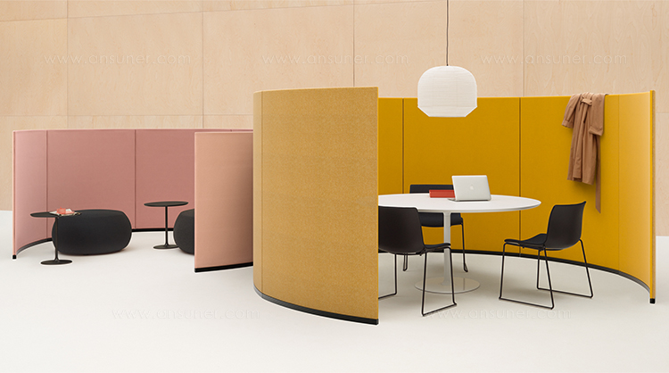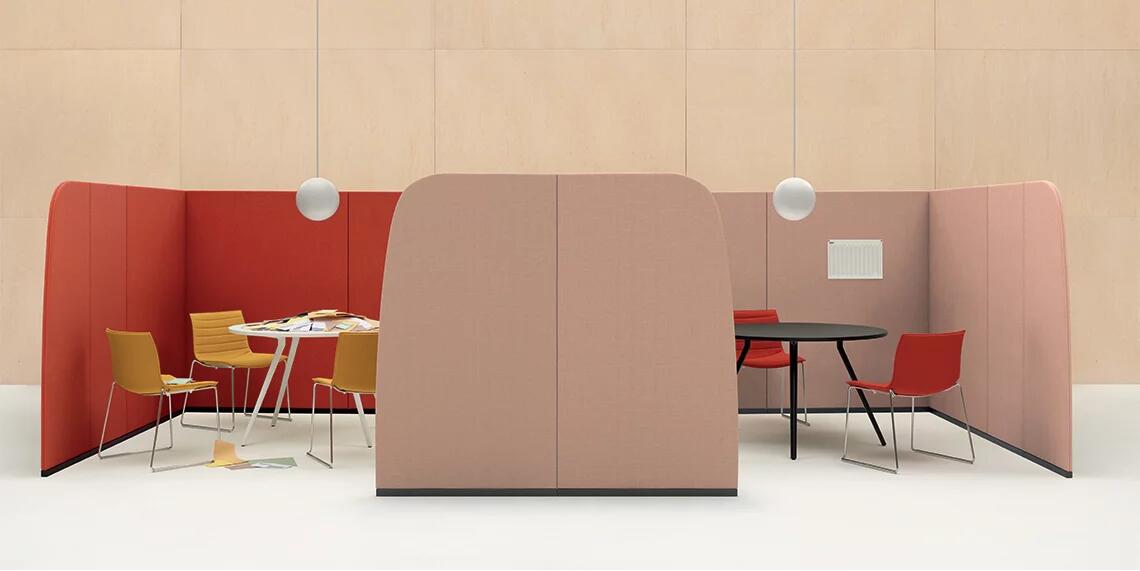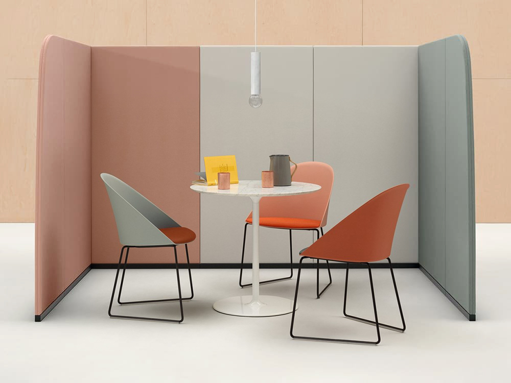 用于定义空间的周长。 Paravan在形式和建筑执行方面具有雕塑感,既清晰又创造空间。像括号一样可以围绕对话,Paravan在开放区域创造亲密感,并采用吸音面板来支持焦点,注意力和协作。