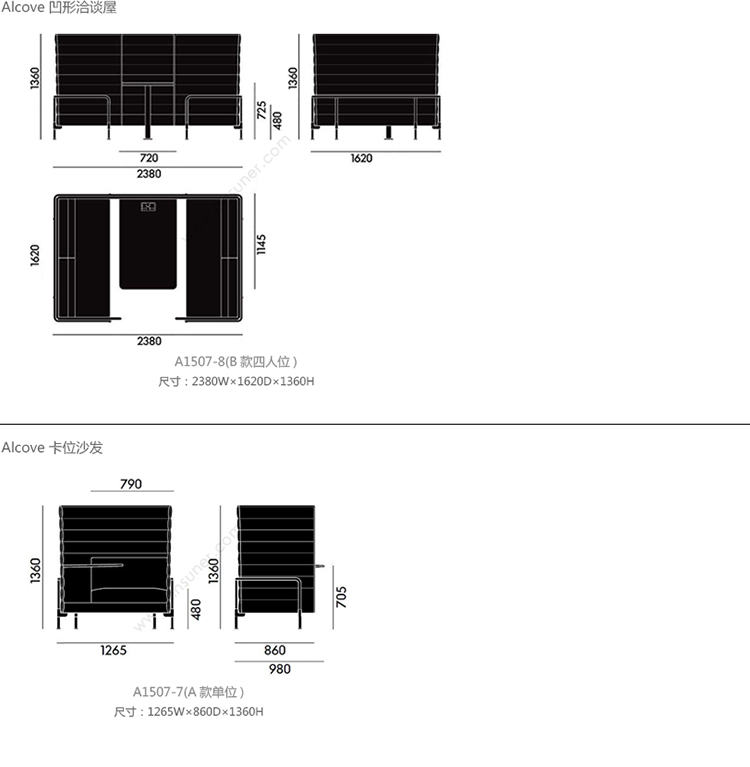 alcove 凹形洽谈屋 系列尺寸/示意图