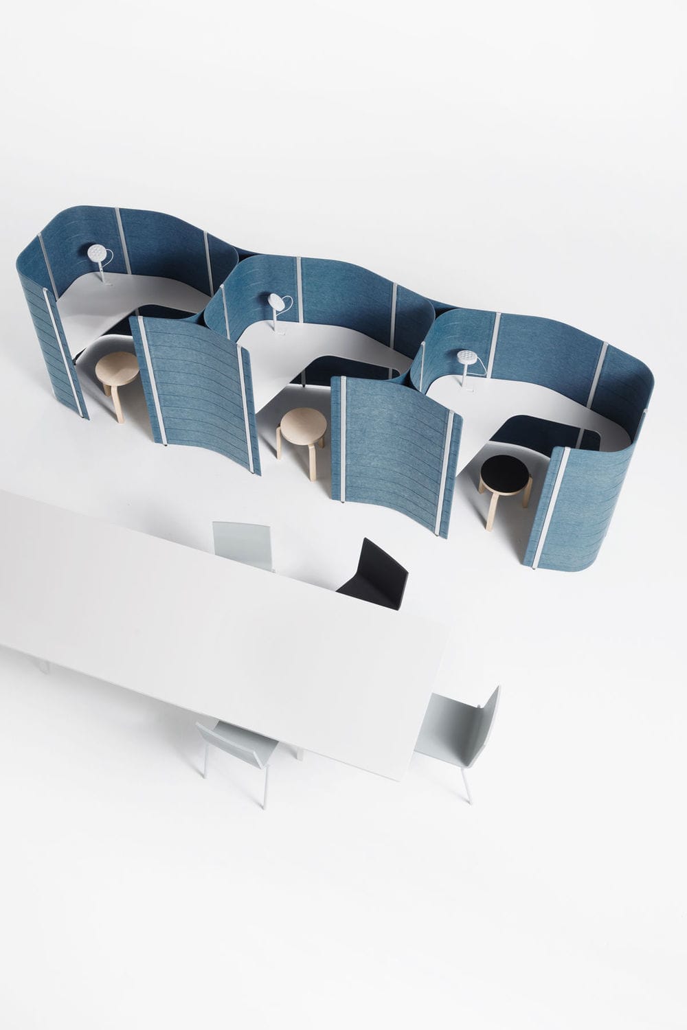 Ronan和Erwan Bouroullec创建了Workbays作为一个有机系统,重新定义了工作环境,打破了常规办公室严格的规划网格。 工作台使员工可以自由地退回到最适合他们正在从事的工作类型的环境。 这些单位可以自发地作为电话亭,视频会议室,阅读角落,咖啡休息的安静地点或会议室 - 不会让参与者闭门造车。