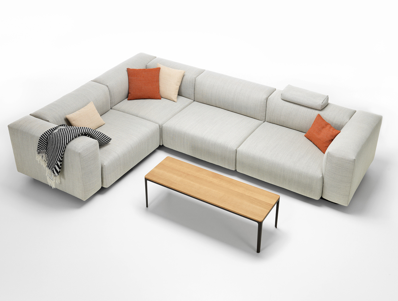 Soft Modular Sofa是Jasper Morrison对现代经典产品的最新诠释:低矮的模块化沙发,具有明显的横向强调。 Soft Modular Sofa采用精心平衡的比例,极佳的舒适性和有意识地放弃装饰细节,体现了这款沙发最纯净的特点。 Jasper Morrison坚定地符合他的“超常规”设计理念,成功地将家庭般的非正式性与精确的整理和表达清晰度相结合。因此,Soft Modular Sofa功能就像一个建筑元素,可以巧妙地集成在任何室内。