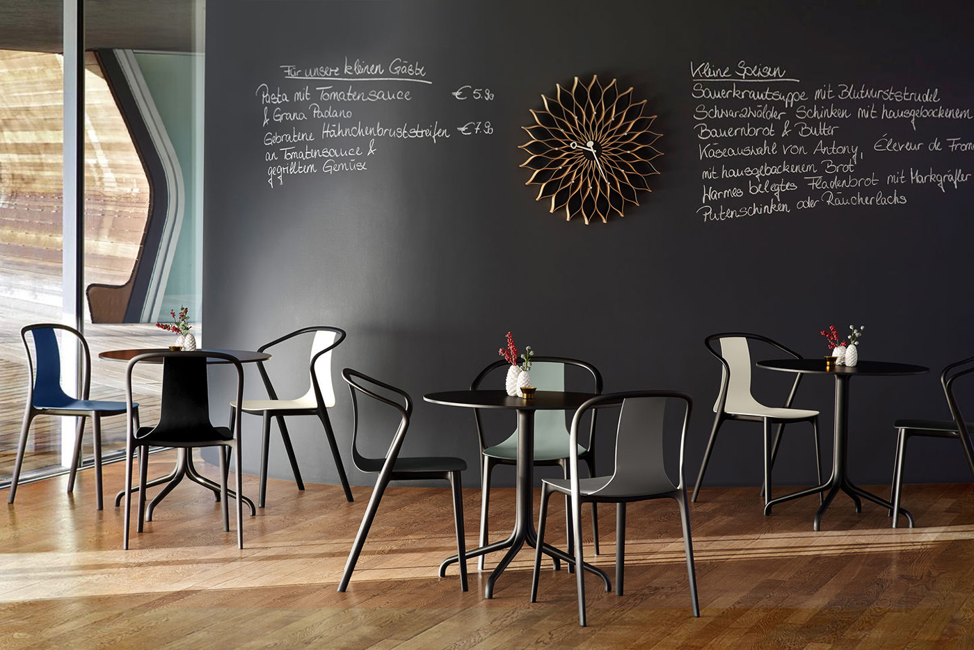 Belleville扶手椅是一种混合座椅,其座椅外壳有塑料,木质或皮革或织物覆盖。 每个版本都赋予优雅椅子独特的个性。 特有的前弯曲扶手提供轻松舒适,带塑料座椅外壳的型号也适合户外使用。
