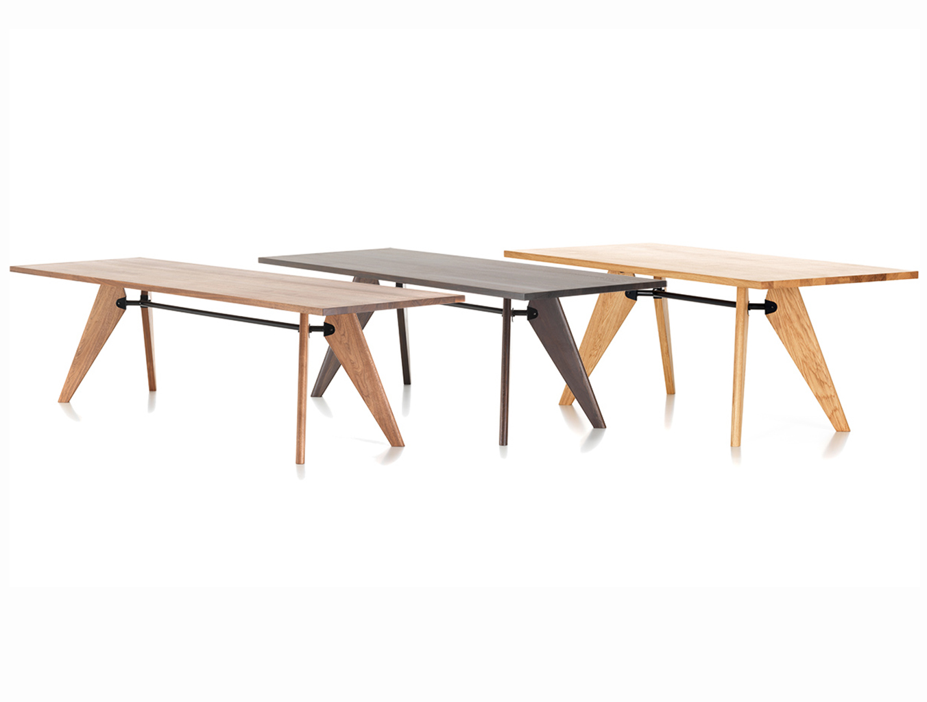 JeanProuve在第二次世界大战期间开发了Table Solvay,由于当时金属稀缺,他设计了优雅的木腿腿。 天然橡木,深色烟熏橡木或美国胡桃木的实木组件为桌子带来轻松和精致的感觉。