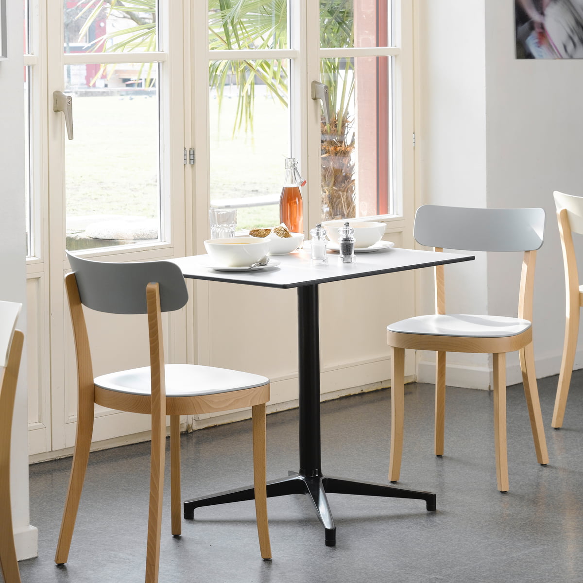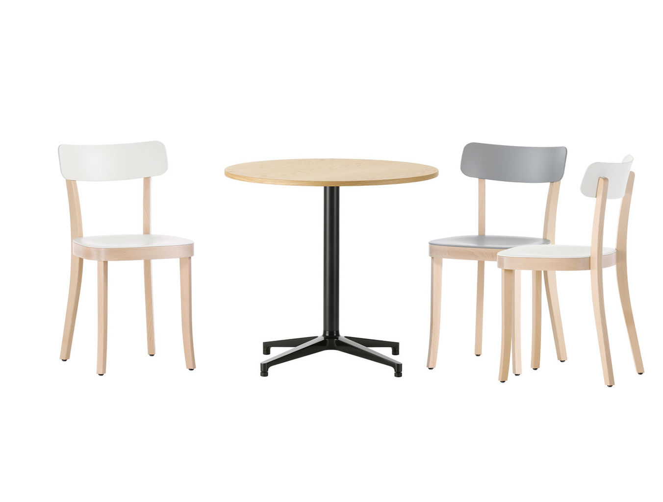 Ronan和Erwan Bouroullec的Bistro Table(2009/2010)拥有优雅的十字形底座和低调的设计,也适合户外使用,配有坚固的核心桌面。