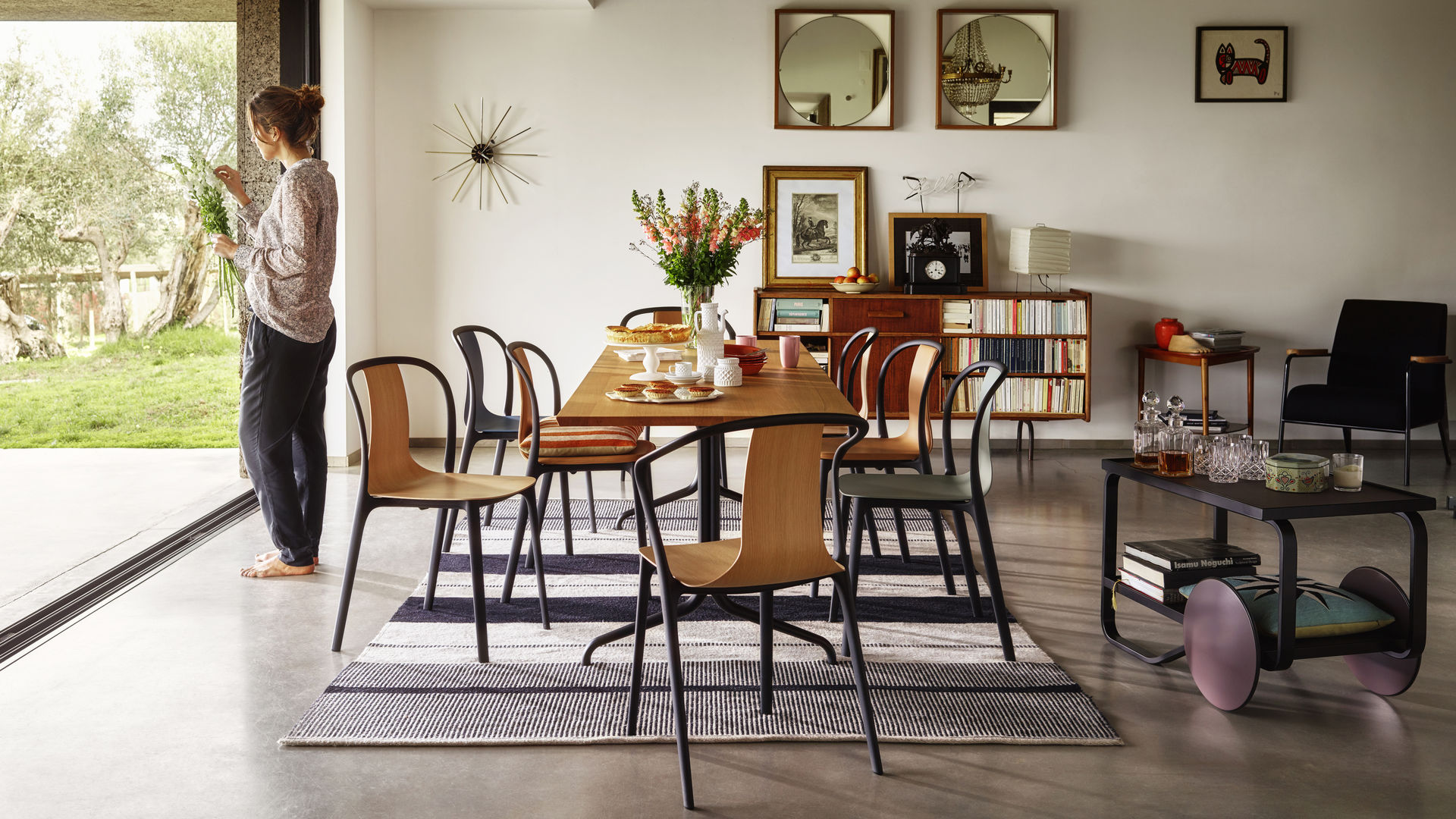 信仰进步和日益增长的经济繁荣是1950年左右美国生活方式的核心方面。一切似乎都有可能,人们努力做到“现代”。 为了将现代设计融入美国家庭,乔治·尼尔森构思了各种日常用品:灯具,钟表和其他家居饰品。 直到20世纪70年代,尼尔森办公室为家庭创造了许多不同的物品,包括泡泡灯和球钟,它们成为了本世纪中期现代设计的象征。