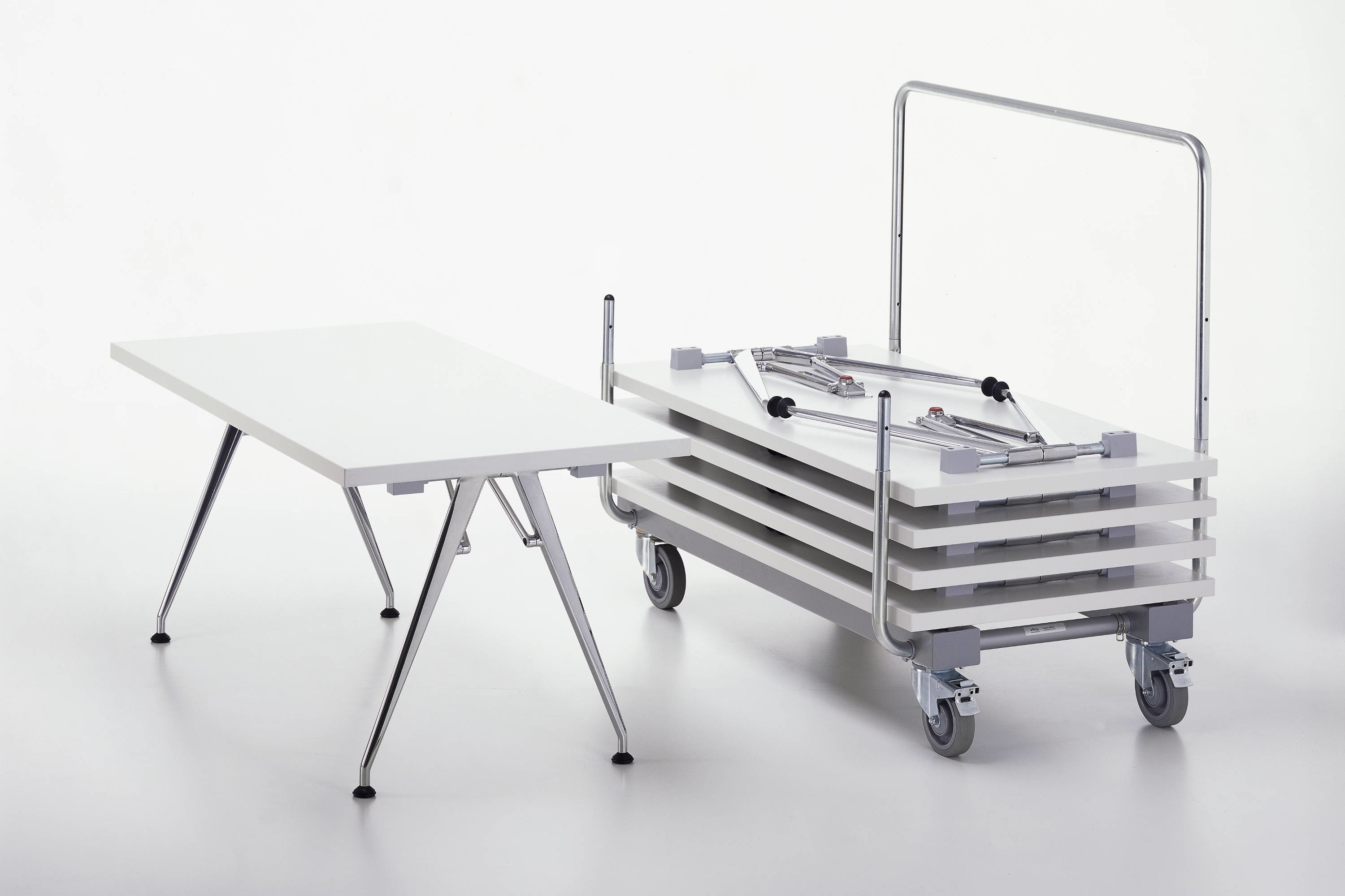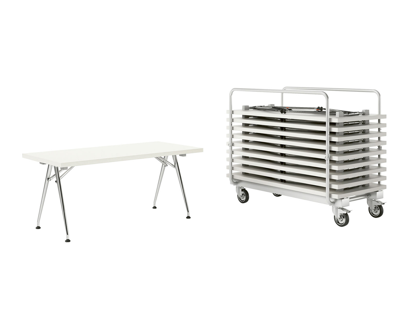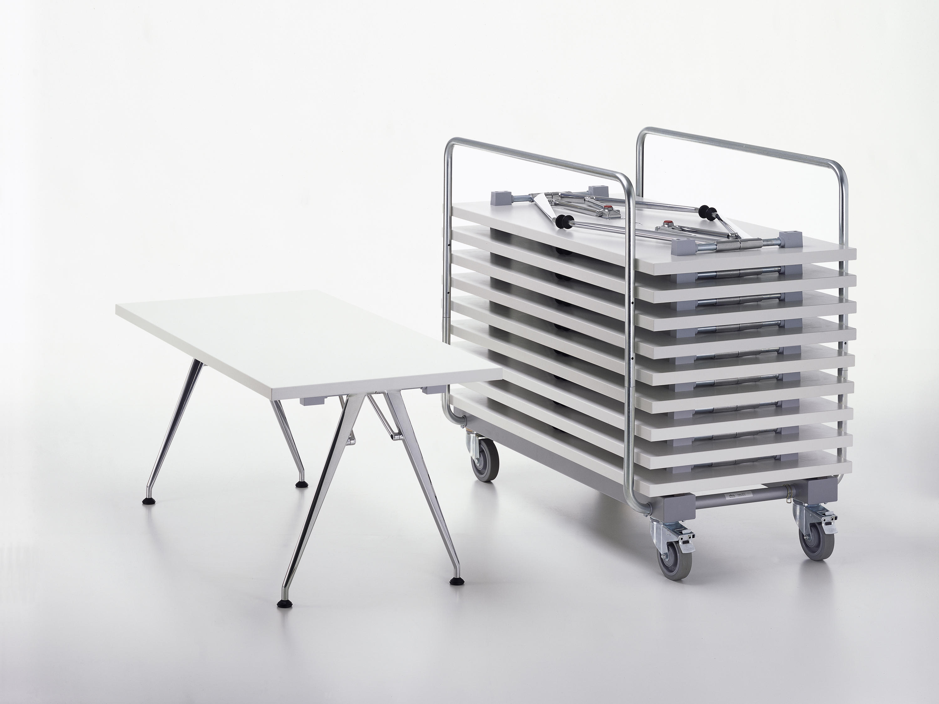 凭借他的Click设计,Alberto Meda创造了一个功能强大的折叠桌。 由于平面折叠机制和优雅的腿部线条,Click看起来不像普通的折叠桌 - 为了增加便利性,只需按一下按钮就可以折叠它的腿。 它有三种尺寸以及一套实用的十张桌子,带有一个可容纳所有十张桌子的堆垛车。