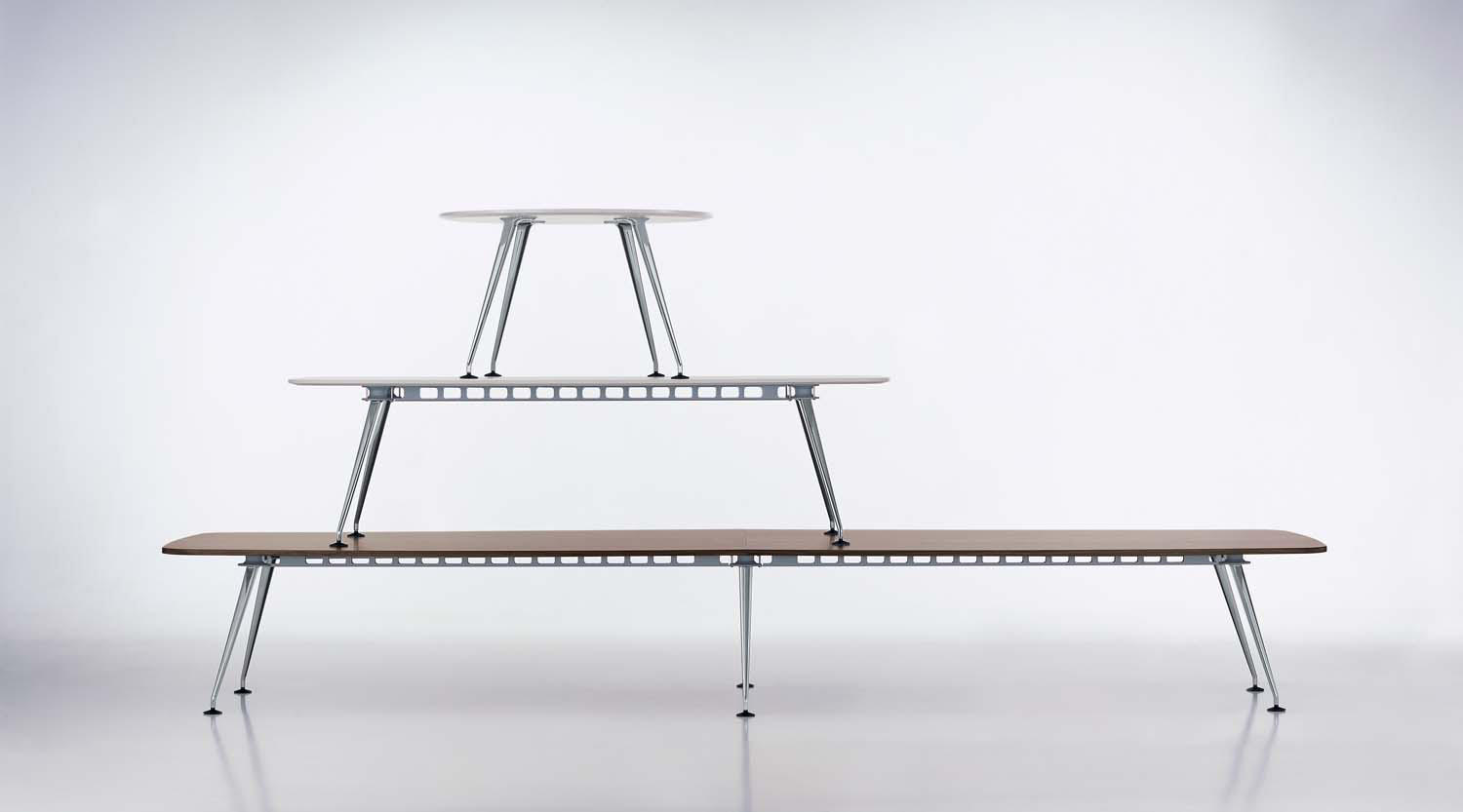 MedaMorph是与Alberto Meda合作开发的,其工程背景在这个着名的会议桌系统的形式和功能中很明显。 简单而精致的底座由星形连接器,可变长度的型材和两种类型的支腿组成,提供模块化选项的构造套件。 除了可配置的访客,会议和会议桌之外,MedaMorph Collection还可以创建任何大小和形状的表格分组。