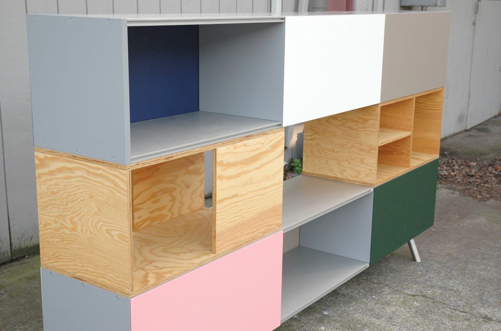 模块化结构,Kast存储单元以侧板作为基本版本开始。 对于中等高度版本,第二个基本模块放置在顶部以创建架子/壁柜组合。 在最高的版本中,添加了两个简单而坚固的木质元素。 Maarten Van Severen特别关注滑动门的颜色,这不仅强调了Kast的比例,而且给人一种清新和乐观的感觉。