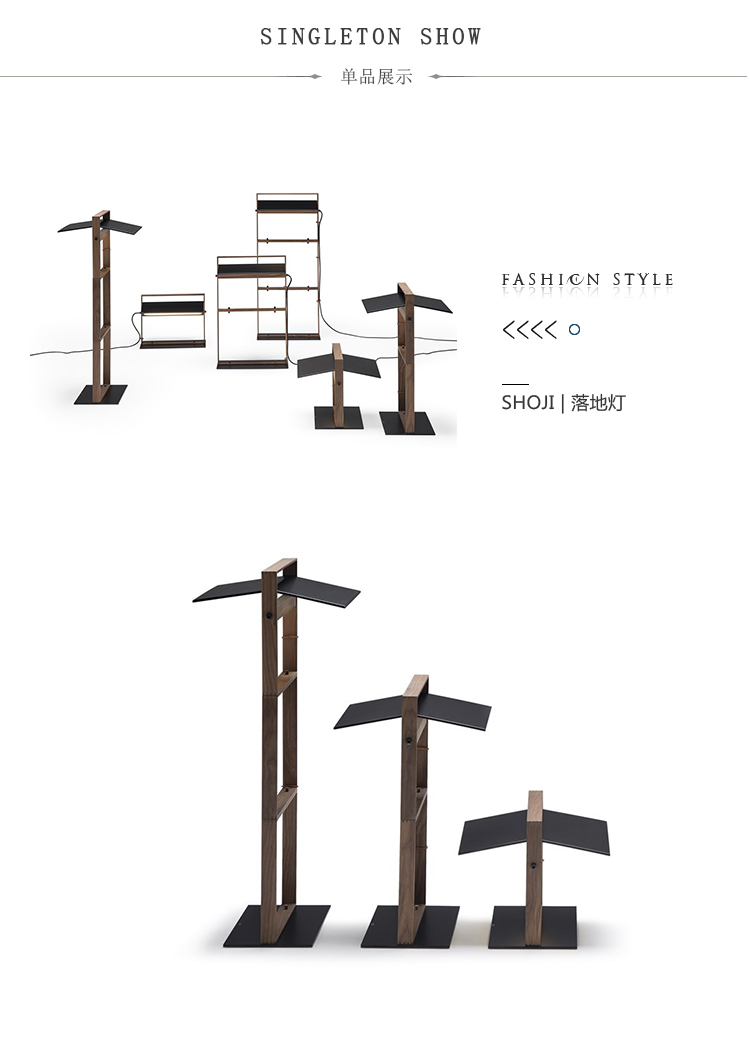 障子窗帘落地灯。实木模块化结构,金属底座和遮阳板.LED照明。