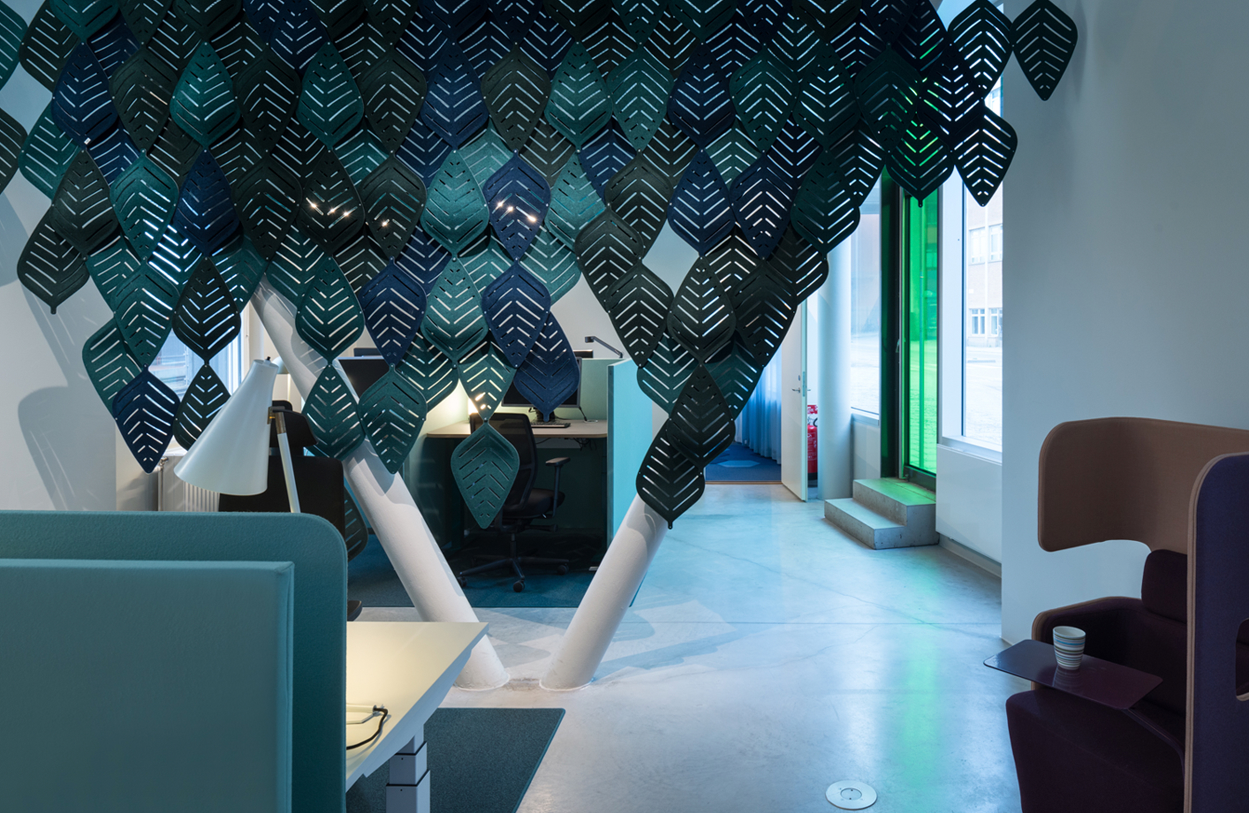 新的吸音Airleaf由Stefan Borselius设计,旨在让大自然融入其中。叶形模块可以组合成各种图案和格式的吸音屏。与Airflake之前的成功非常相似,Airleaf可以轻柔地分离并构建令人愉悦的音景,同时保持空间开放性。开放程度取决于叶子的组合方式。Airleaf由模制毛毡制成,悬挂在天花板上。它的安装和安装一样简单。Airleaf有30种不同颜色可供选择。