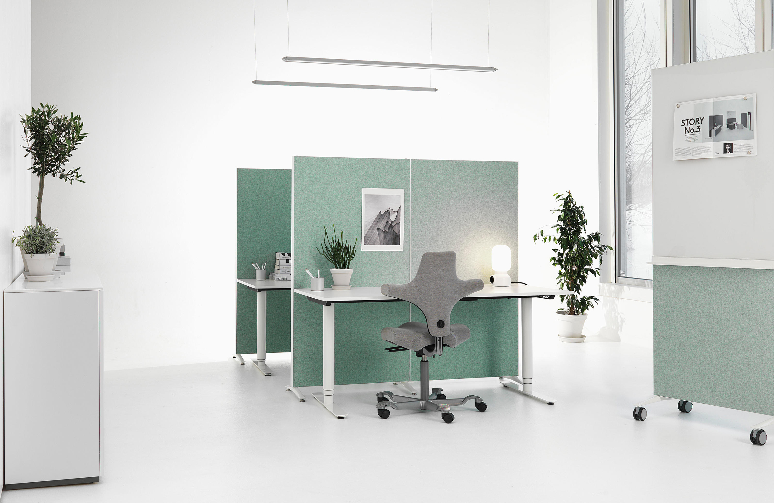Nina Jobs设计了Alumi Combi和Alumi Combi Light,旨在鼓励同事随心所欲地召开会议。屏幕既可作为吸音器,也可作为书写板,安装在轮子上,便于携带。多功能书写板与Alumi系列中的其他吸音屏幕具有相同的低调外观,使它们能够和谐统一。