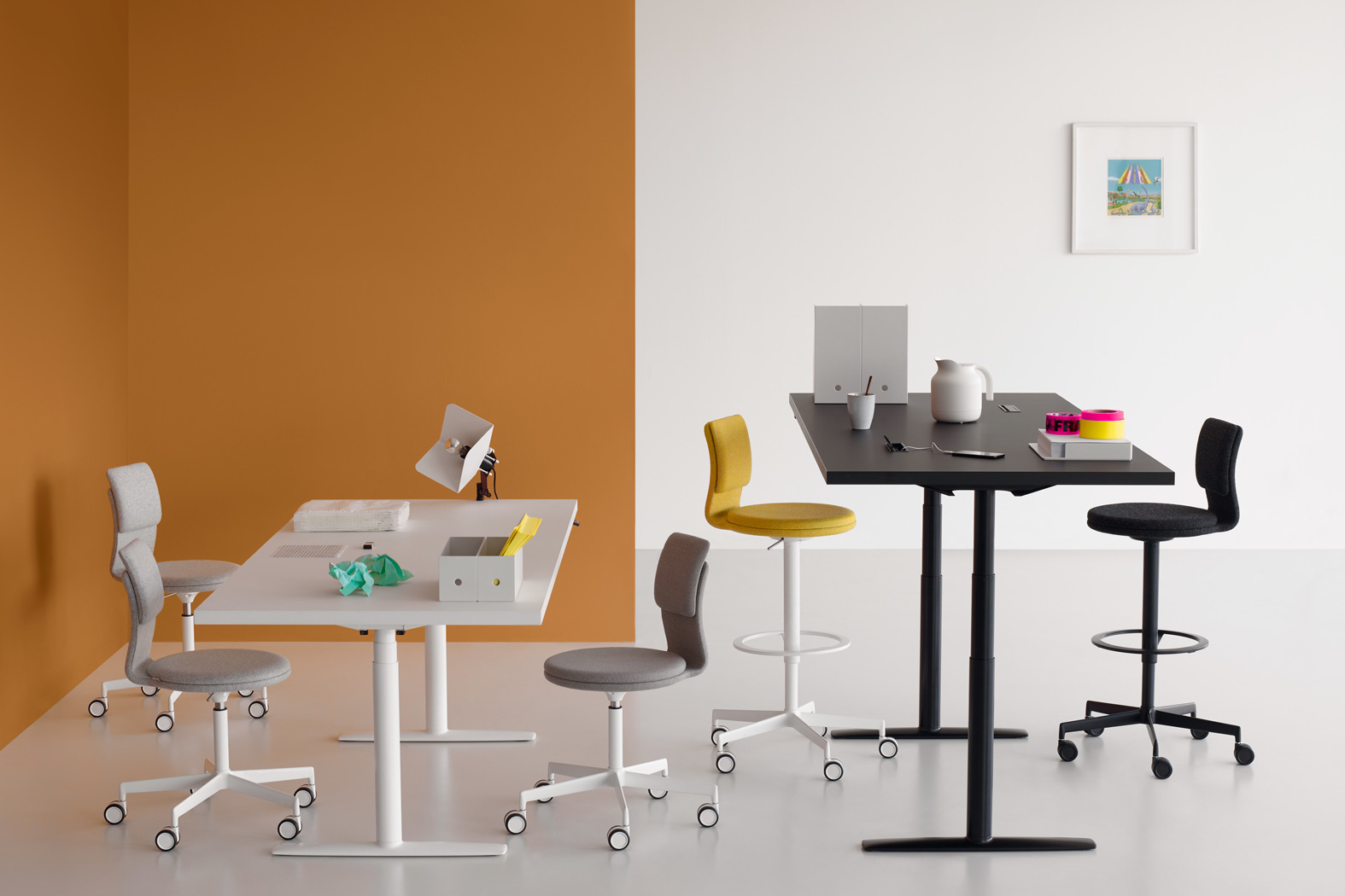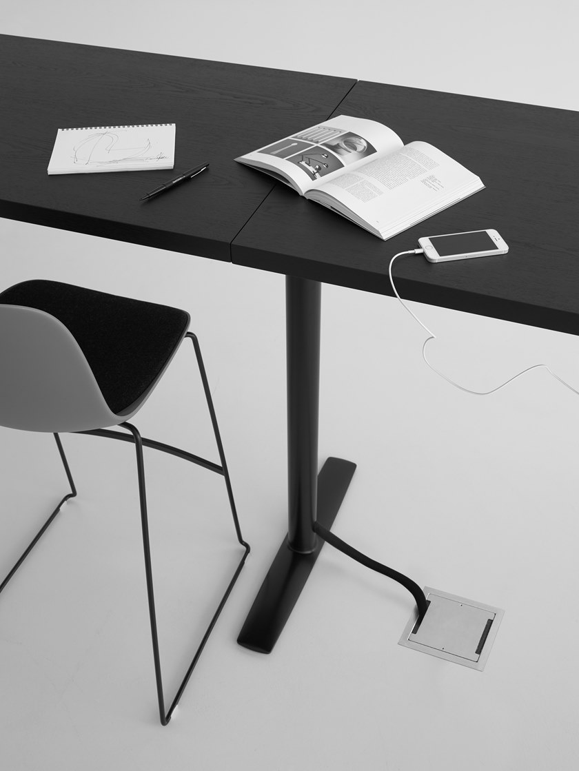 它的强大特性来自于一件作品的融合,经过四十年的经验和研究获得的专业知识。不同尺寸和可调高度的表格,作为单个元素创建或作为一个单元连续使用,以适应所有的上下文,依赖于这个高度重要的耦合元素。该表装有电连接点,顶部凹槽,以及无线充电点,以满足当代工作环境的需要。