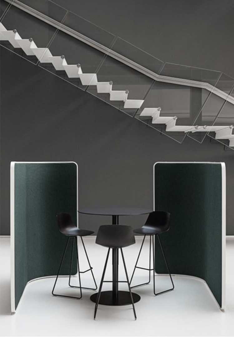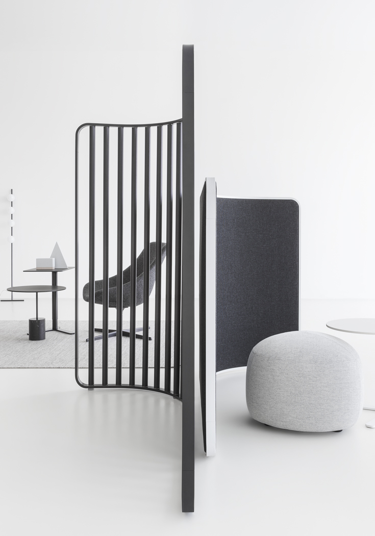 在广阔的开放空间中,像标点符号一样,屏幕面板可以协调当代办公室的线条。由FrancescoRota创建的分区系统允许定义每个工作站,用磁铁连接系统。这是一个优雅的“无形”元素,提供了一个轻版本的隐私。最大的通用性,高度和管状木材解决方案或吸音织物面板。空间保持开放,心灵可以集中和休息。