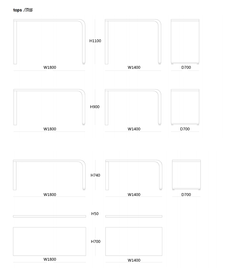 BRUNCH 高脚台/吧台 系列尺寸/示意图