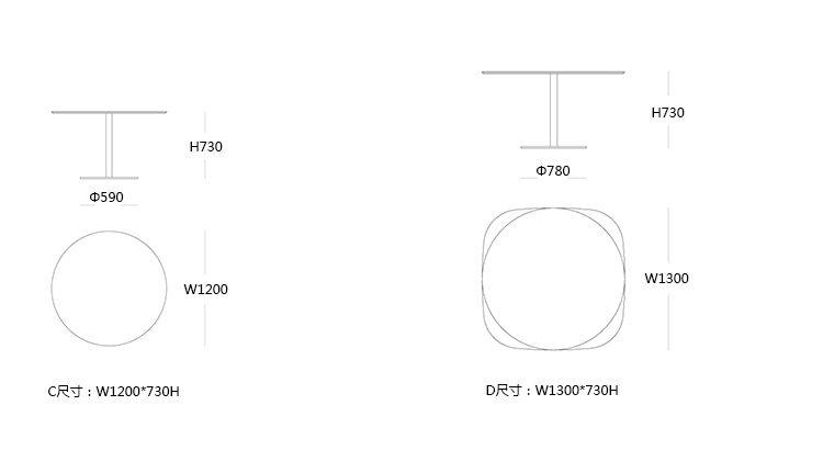 RONDò 咖啡桌/洽谈台 系列尺寸/示意图