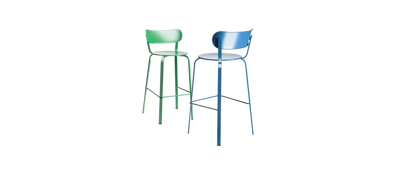 椅子和凳子- -小酒馆机型,STIL收集的光当代版本是一个非常时髦一项所述的单一材料,金属和明亮的颜色的播放允许无数组合和组合物。