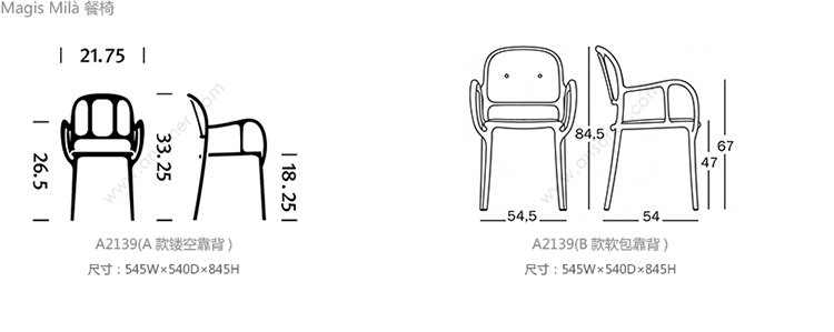 Magis Mila 系列尺寸/示意图