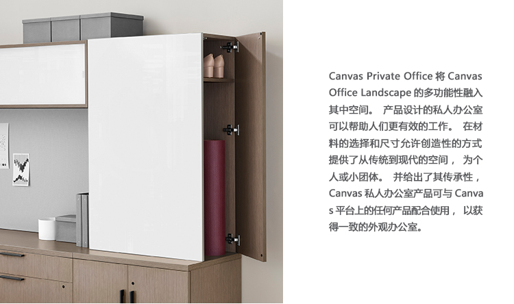 Canvas Private Office将Canvas Office Landscape的多功能性带入封闭空间。 为私人办公室设计的产品可以帮助人们高效地工作。 材料和尺寸的选择允许创造性的方式来提供空间 - 从传统到现代,为个人或小团体。 鉴于其产品线,Canvas Private Office产品可与Canvas平台上的任何产品配合使用,在办公室内保持一致的外观。