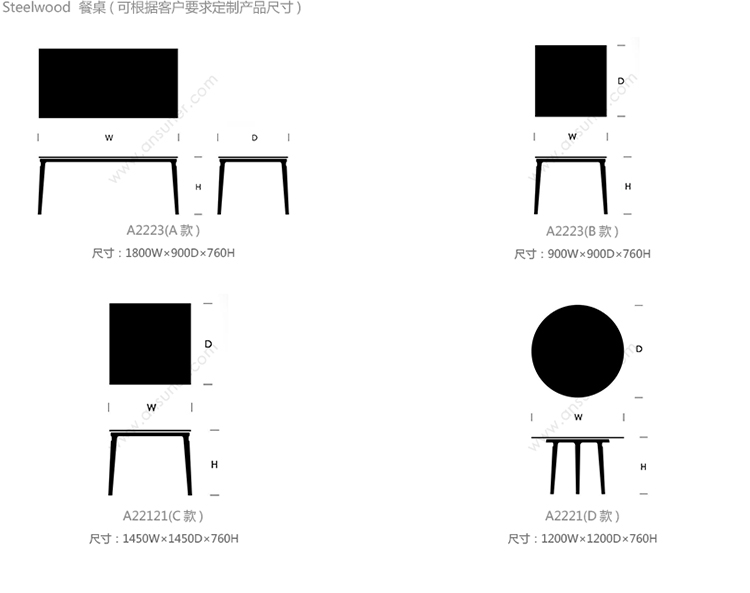 steelwood 餐桌 系列尺寸/示意图