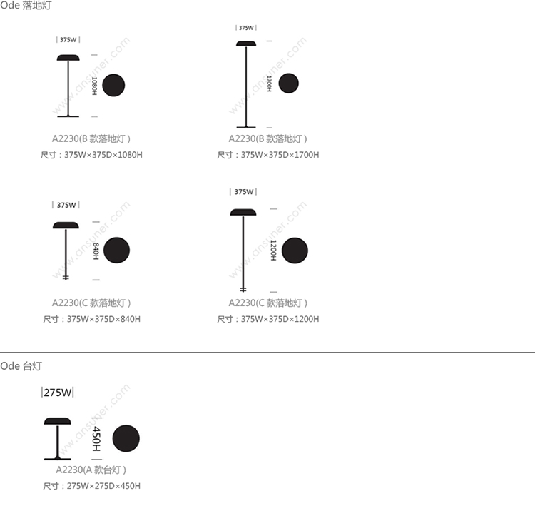 Ode 系列尺寸/示意图