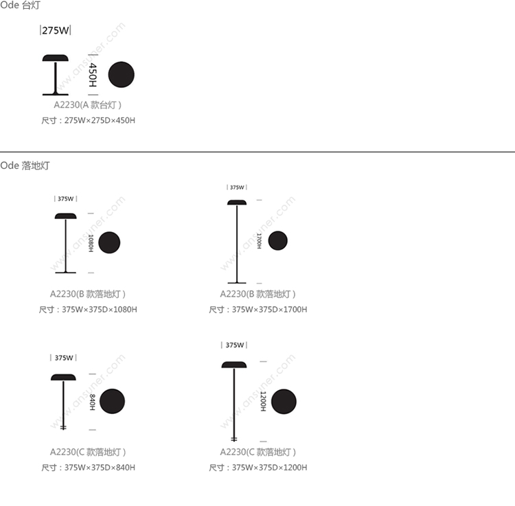 Ode 系列尺寸/示意图