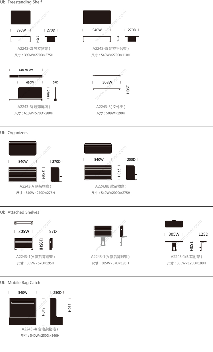 Ubi Freestanding Shelf 系列尺寸/示意图