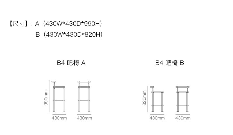 B2 吧椅 系列尺寸/示意图