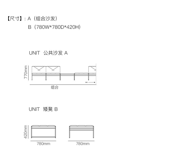 UNIT 公共沙发 系列尺寸/示意图