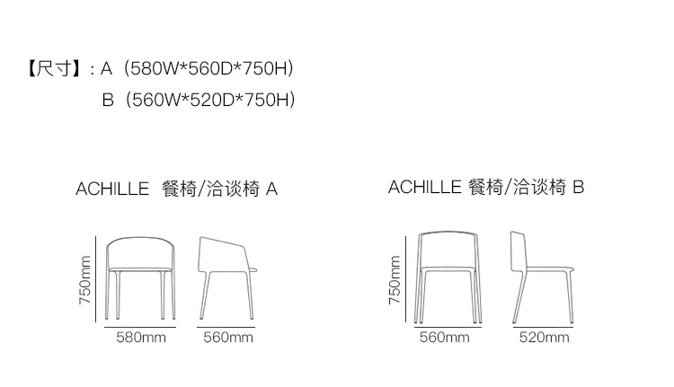 ACHILLE  餐椅/洽谈椅 系列尺寸/示意图
