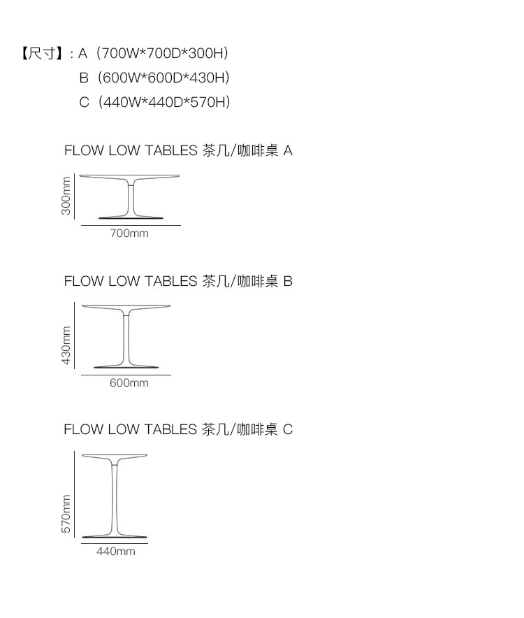 FLOW LOW TABLES 茶几/咖啡桌 系列尺寸/示意图