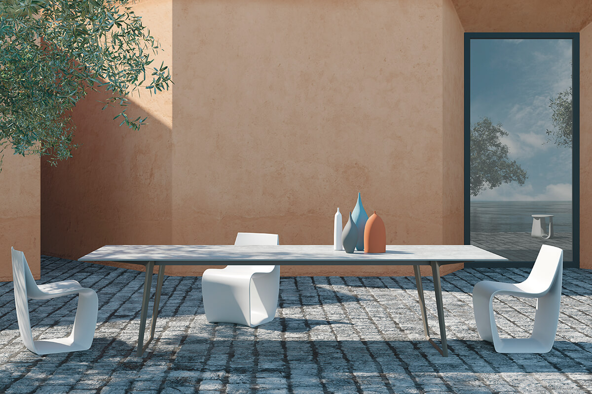 轻巧与动态悬挂感相结合是新桌子系统Axy设计的主题。这是一种基本架构,其中两个完全由铝制成的结构桥的原始设计重新组合了张力和强度线,并具有有效的表现力。 薄薄的顶部使桌子更加完美,传达了总体的空中印象,同时又保证了稳定性。Axy有多种配置可供选择,包括可扩展版本,多种材料和饰面,可自然地适应从餐桌到办公桌的各种室内和室外使用。 长方形桌子有20种尺寸和不同的深度,高度为73cm,类型和配置: -固定:AXY和AXY舒适型 -可扩展:AXY扩展。