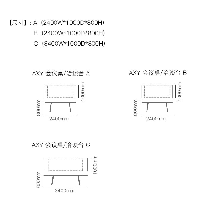 AXY 会议桌/洽谈台 系列尺寸/示意图