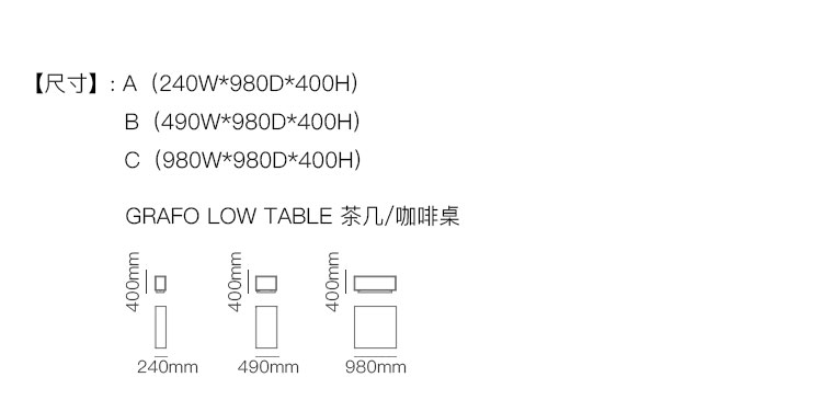 GRAFO LOW TABLE 茶几/咖啡桌 系列尺寸/示意图