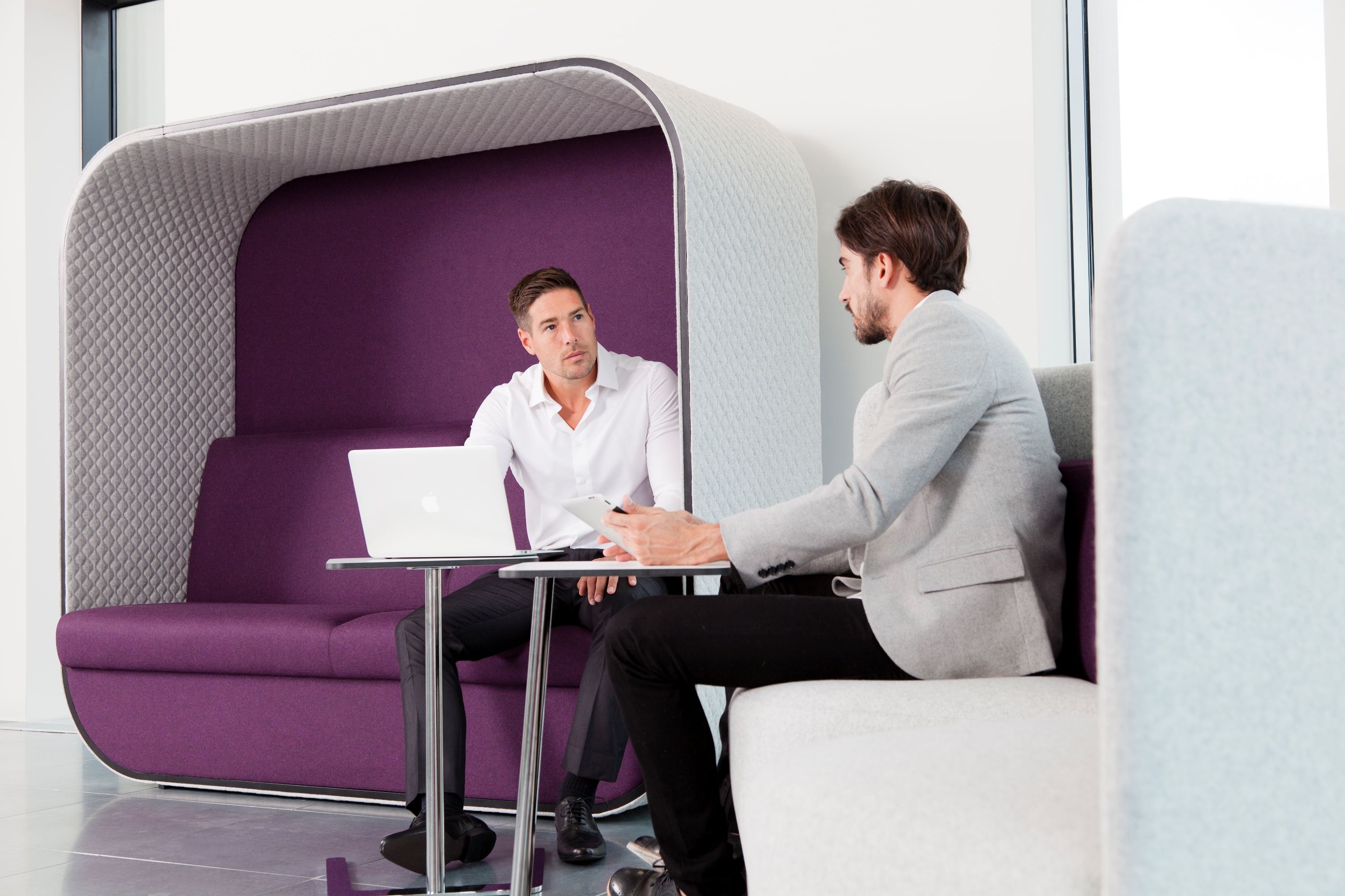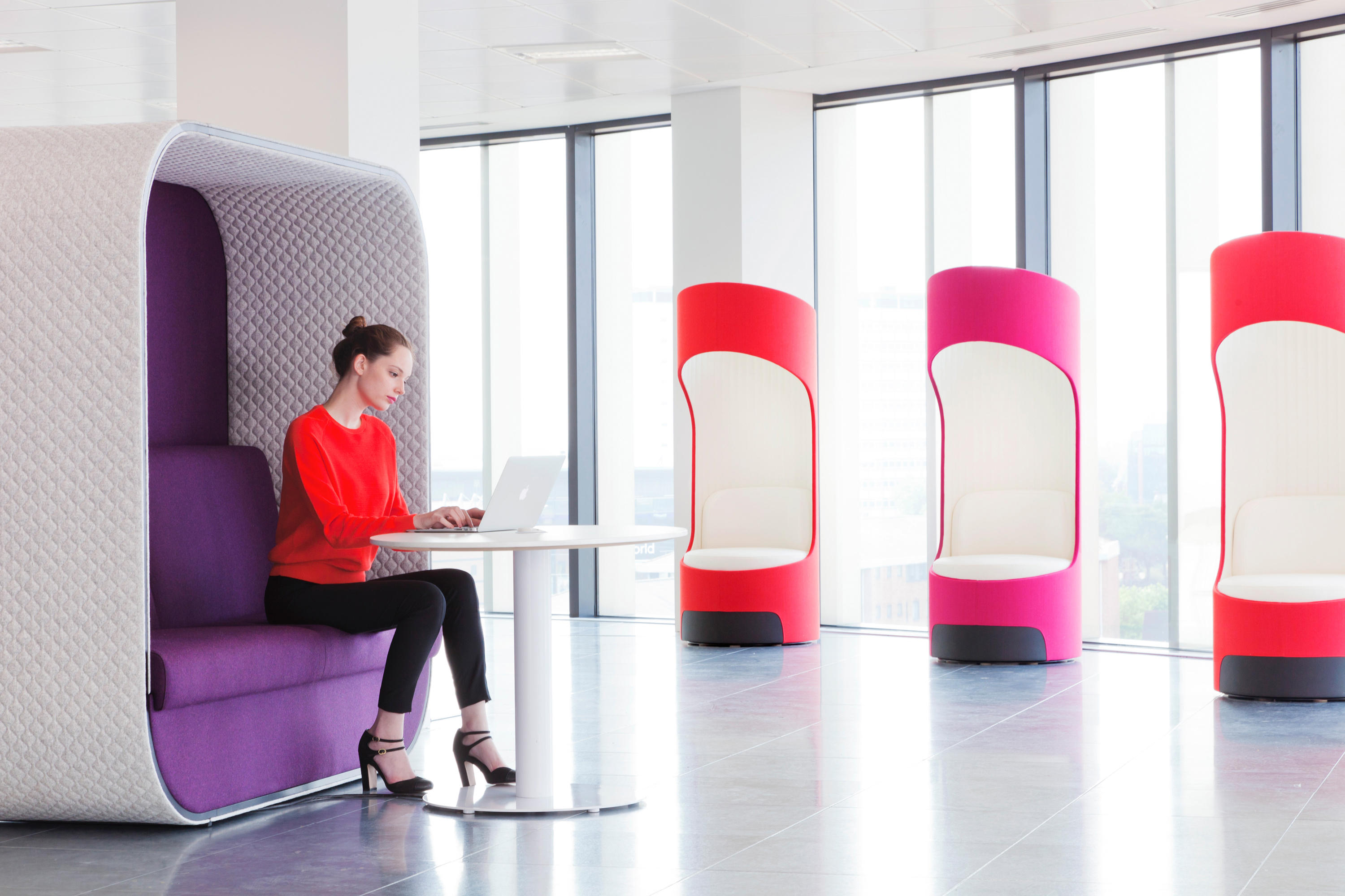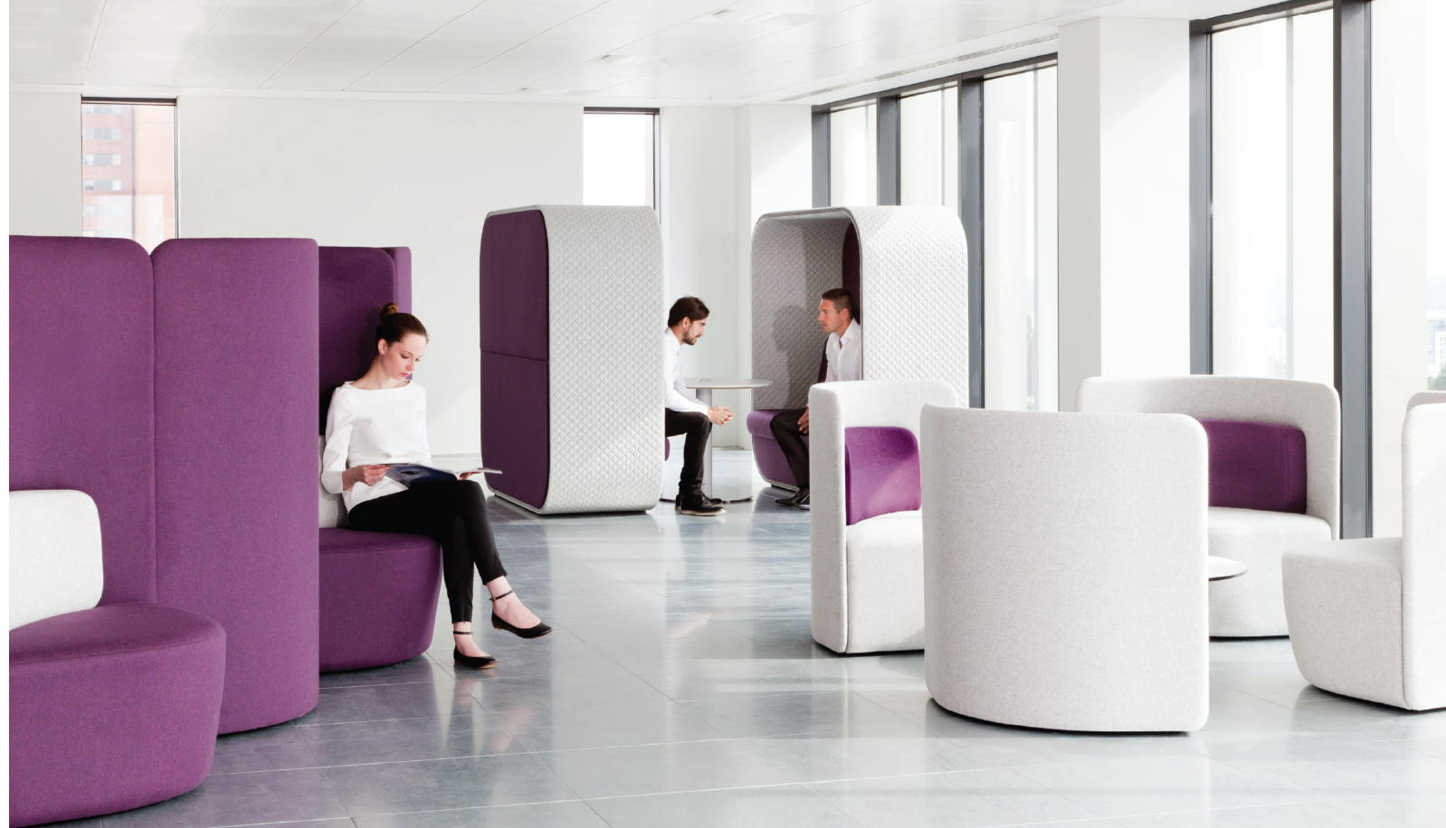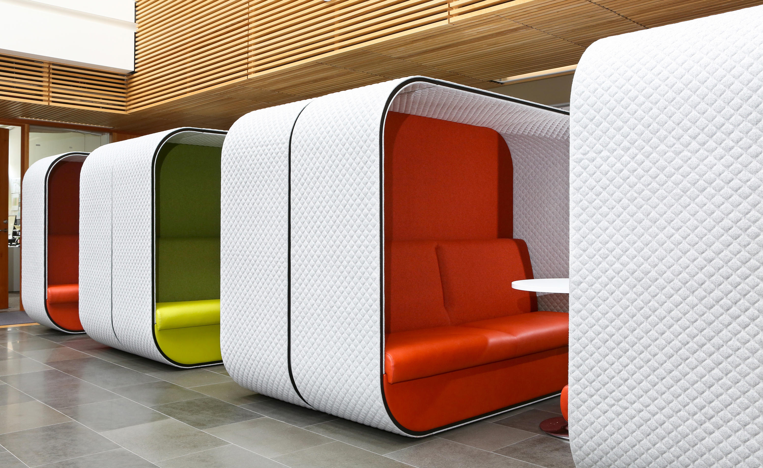 舒适且符合人体工程学要求的蚕茧(Cocoon)为非正式环境创造了理想的会议空间。这种高的、软垫的结构可以吸收周围环境的背景噪音,而不需要内部结构。