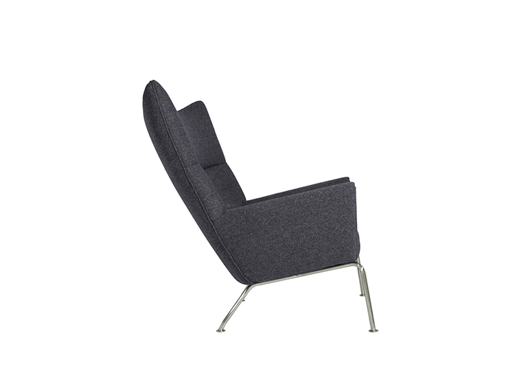 Wing Chair 典型的 Hans J. Wegner 設計,雕塑般的立體線條,讓這張椅子像藝術品般的獨佔一方。寧靜、祥和、平衡的鮮明的個性,來自椅背的弧度、轉角的收邊、肩線的溝槽和襯墊扶手。