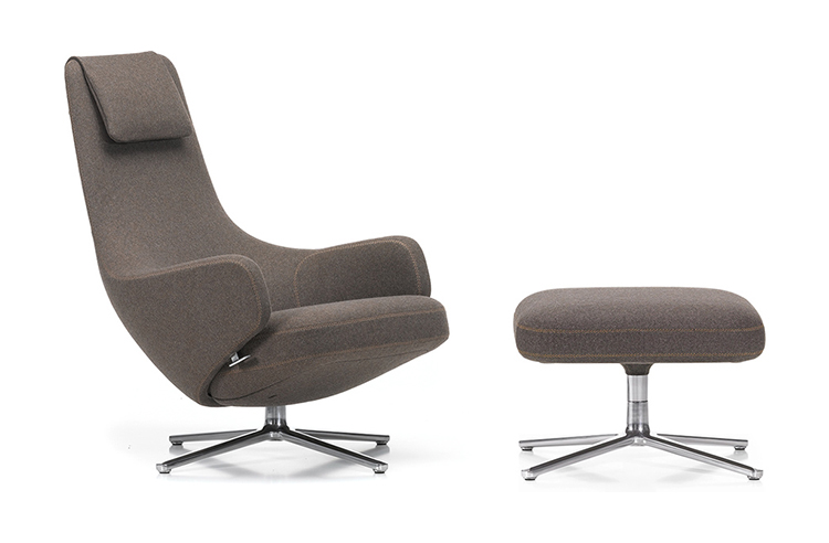 "repos lounge chair and ottoman(repos休闲椅&脚踏)由设计大师Antonio Citterio所设计。repos系列休闲椅采用钢制铝合金脚架、聚氨酯海绵填充、高级布艺扪面,可随意调整坐姿和高度,也可以放平躺,配上舒适的羽毛衬垫,无论阅读或者休憩,都非常舒服,符合人体工学,高档舒适,是办公,会议的理想选择。意大利设计师和建筑师 Antonio Citterio赋予了这边椅子永恒的优雅气质与无与伦比的舒适,是当代设计的经典,无论用在办公、商业、家庭都是非常高贵大气的。