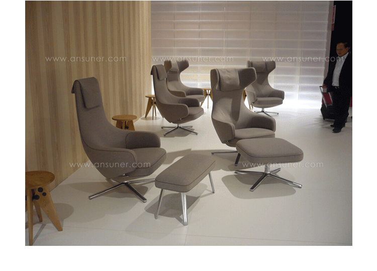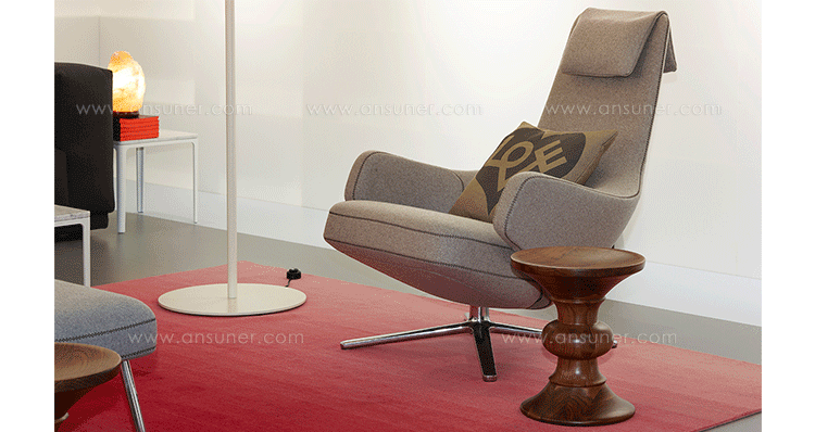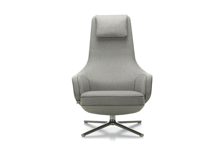 repos lounge chair and ottoman(repos休闲椅&脚踏)由设计大师Antonio Citterio所设计。repos系列休闲椅采用钢制铝合金脚架、聚氨酯海绵填充、高级布艺扪面,可随意调整坐姿和高度,也可以放平躺,配上舒适的羽毛衬垫,无论阅读或者休憩,都非常舒服,符合人体工学,高档舒适,是办公,会议的理想选择。意大利设计师和建筑师 Antonio Citterio赋予了这边椅子永恒的优雅气质与无与伦比的舒适,是当代设计的经典,无论用在办公、商业、家庭都是非常高贵大气的。