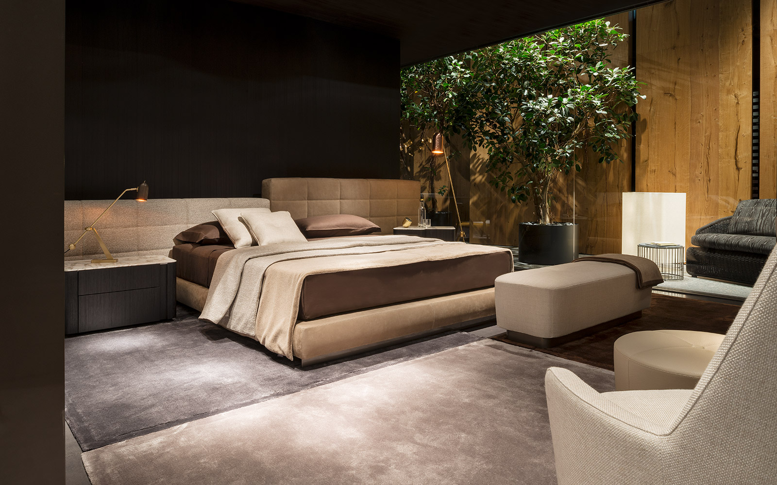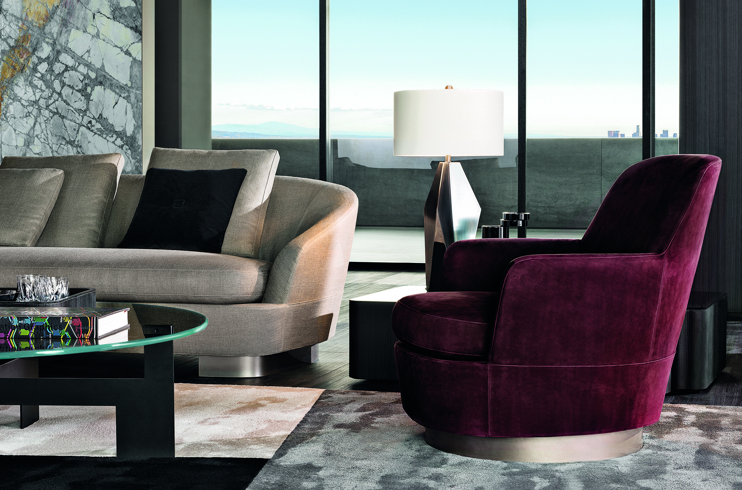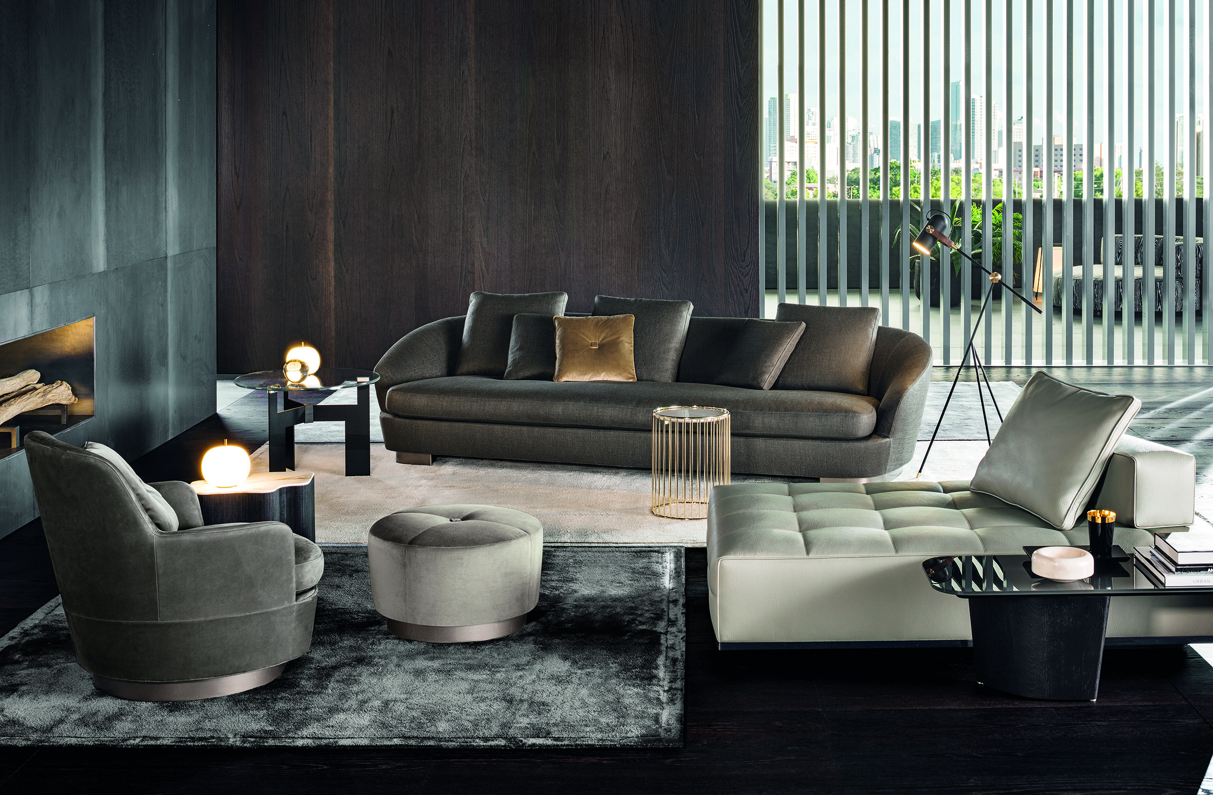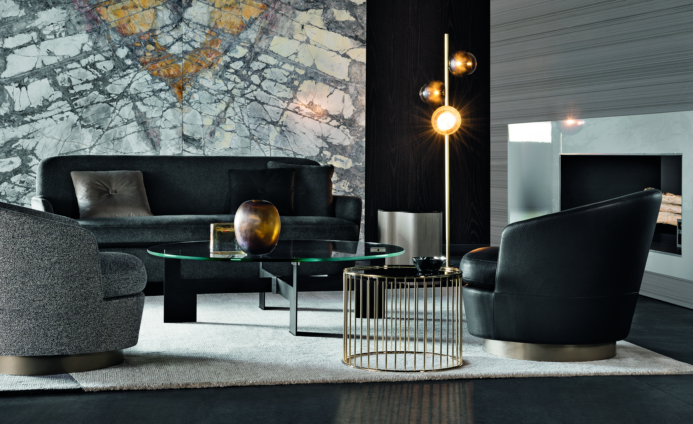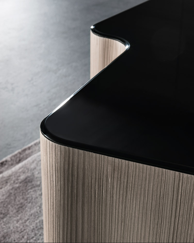 浅灰色与亮光灰褐色的落叶松木基座搭配不同材质的嵌装台面,打造出与众不同的对比效果:Calacatta大理石的华贵气质与玻璃釉的纵深感,配合木材的温润质感。 不同寻常的造型和迷人的材质组合为这款卧室家具配件平添一份独特的魅力,Lou系列所特有的美学图样也呈现其中。