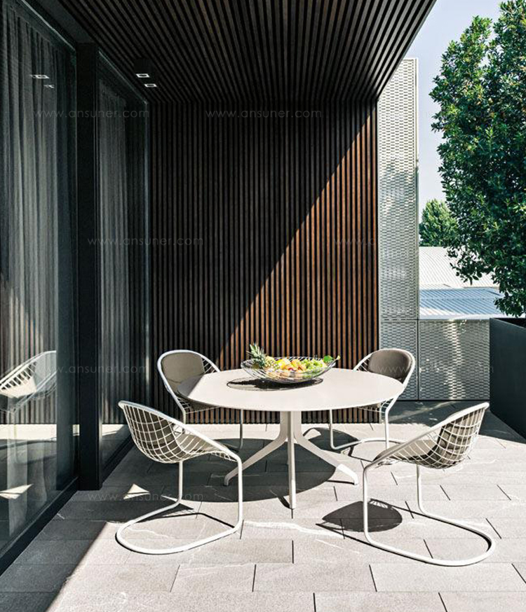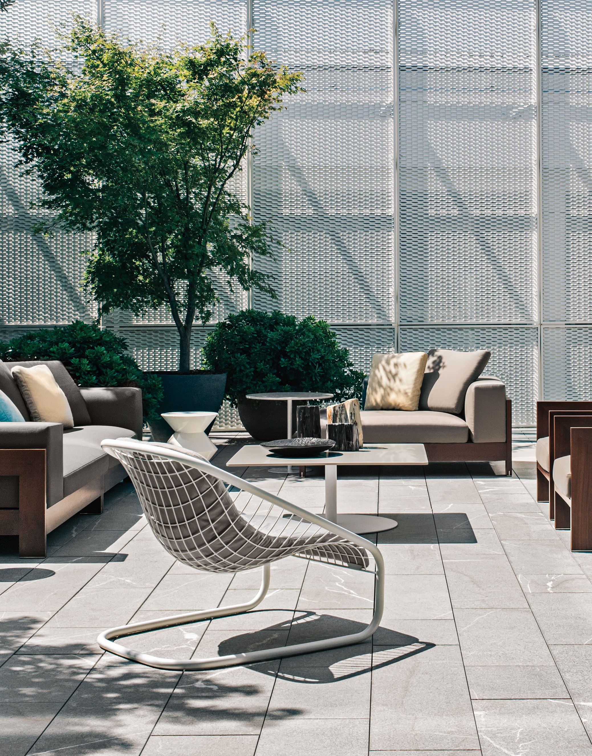 金属网的结构十分轻盈,似乎是要挑战地心引力,产品用途十分广泛,可以与Minotti系列的所有沙发搭配,呈现丰富多彩的组合形式。