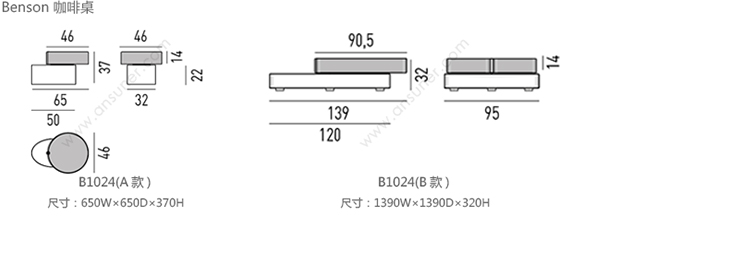 Benson 咖啡桌 系列尺寸/示意图