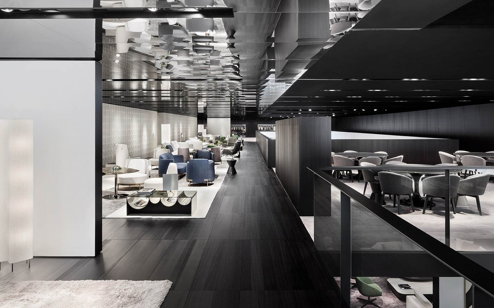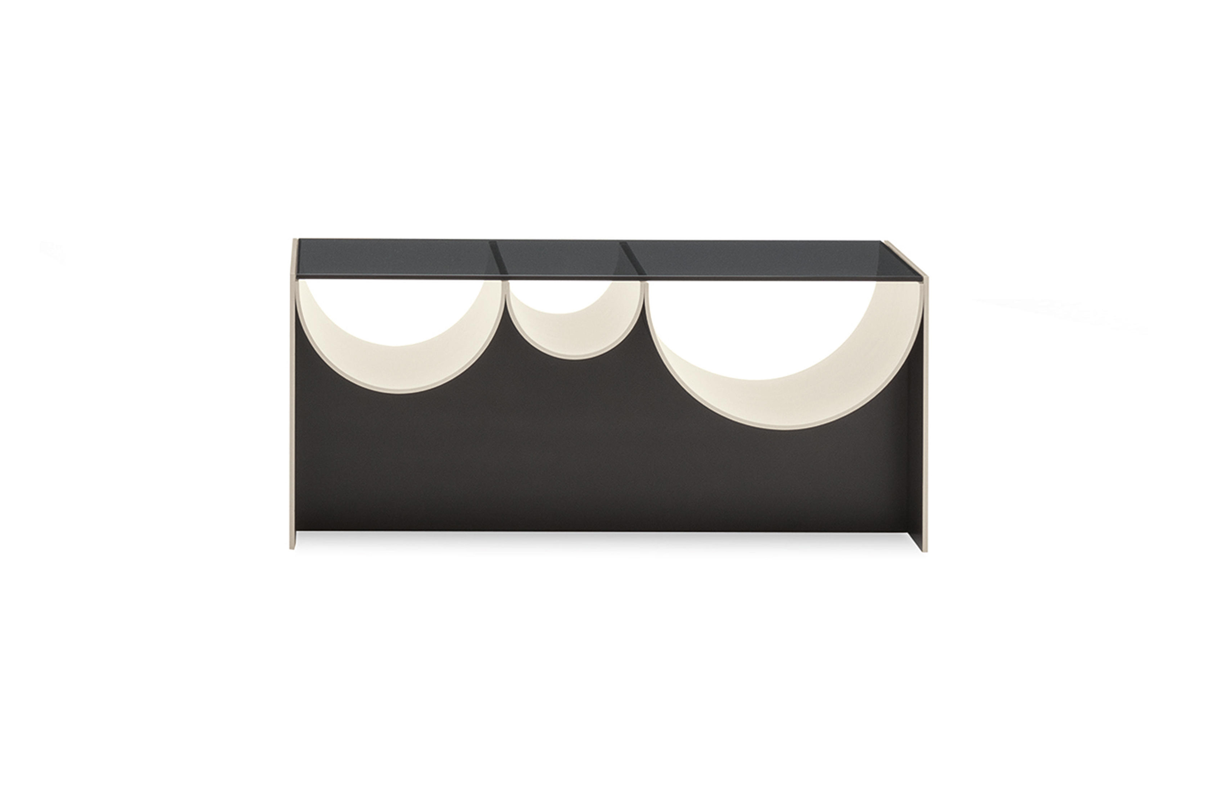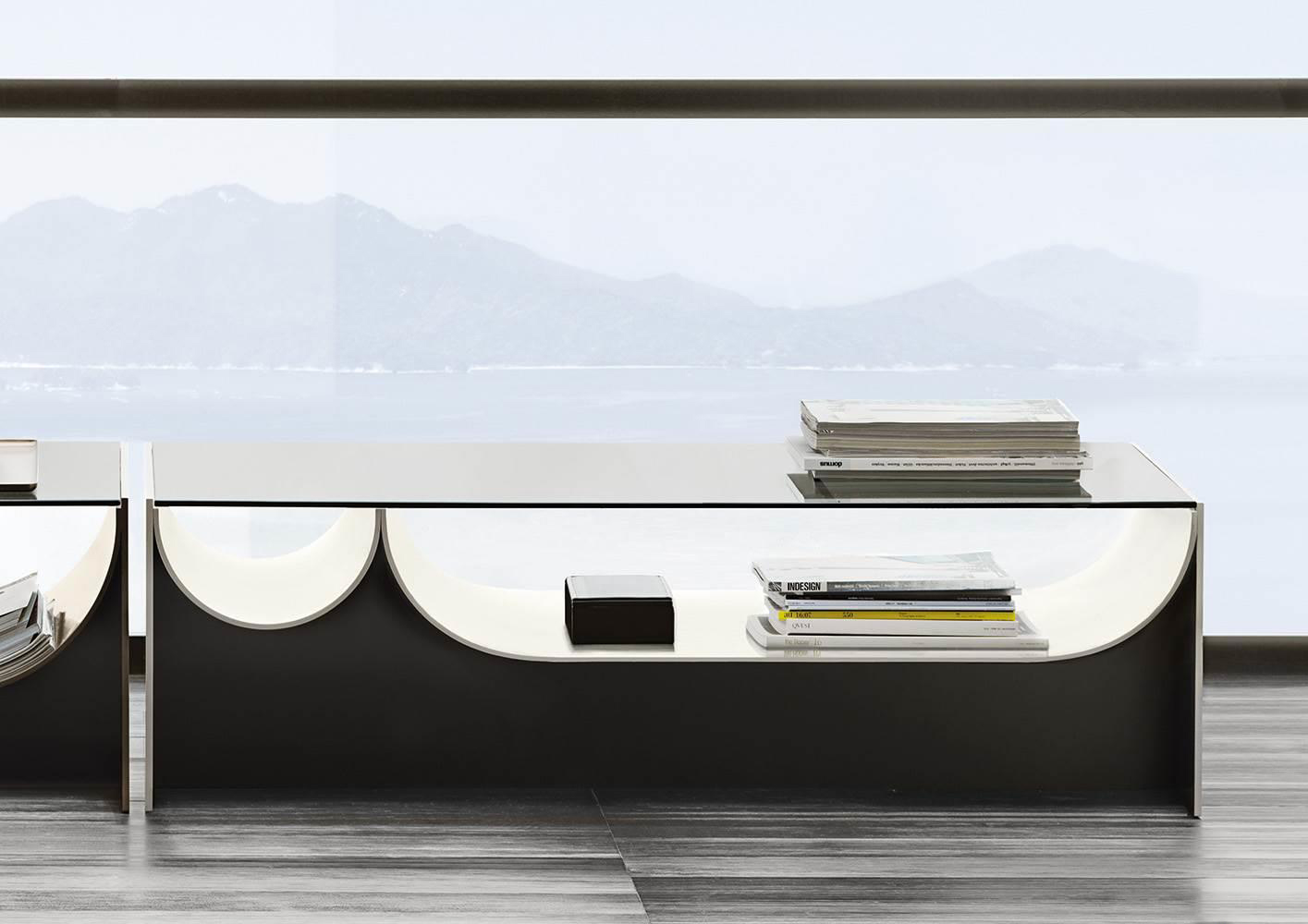 连续的连续的倒置的半圆形使前轮廓蜿蜒而上,适应了空的空间,使使用者能够将杂志、报纸和小物体以平视的方式离开。