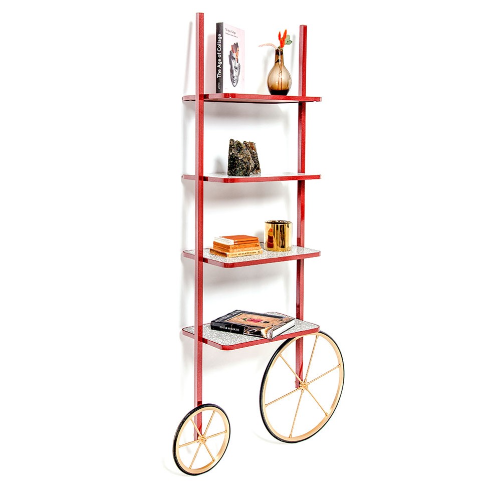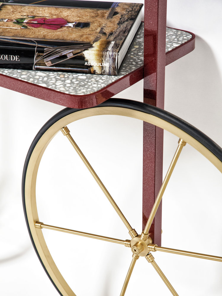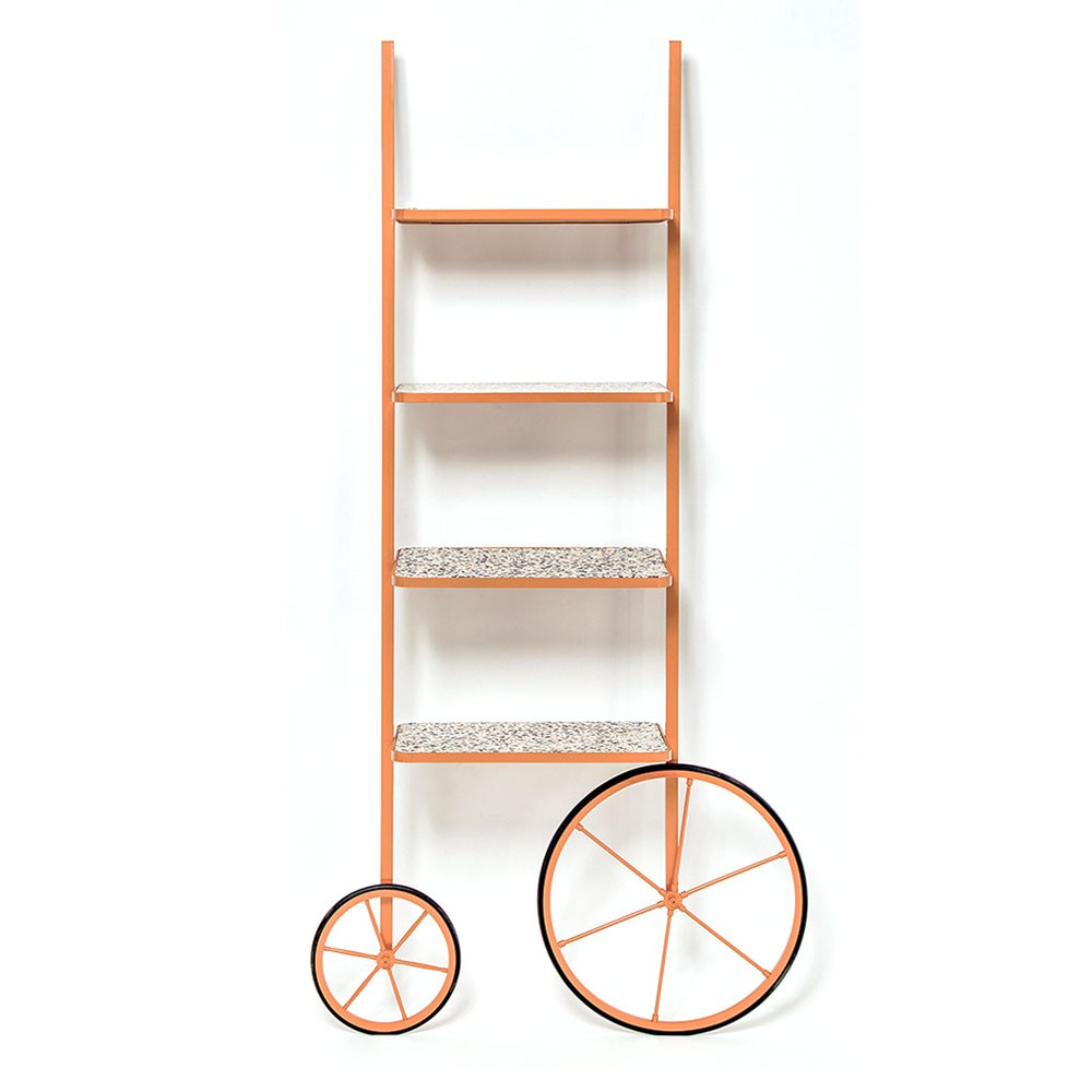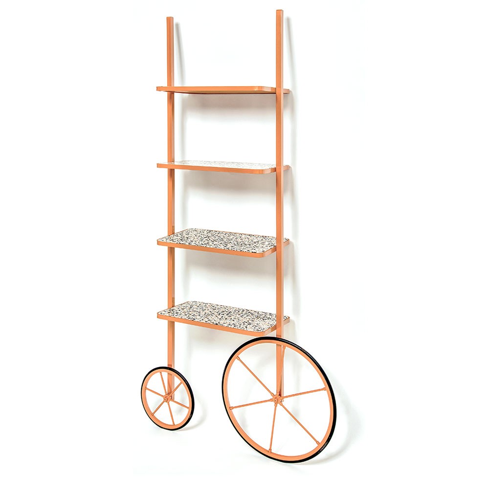 Cyclopedia的设计源于19世纪70年代的高轮自行车。 与大多数书架不同,Cyclopedia通过其便携式结构使自己与众不同。 这个独特的作品是一个图书馆和一个展示架,可以在空间周围的不同位置轮式和定位,以满足业主的喜好和目的。 新版Cyclopedia由波尔多彩色粉末涂层金属和灰白色水磨石组成,这款手工制作的单品必将为其任何表面带来不拘一格的氛围。