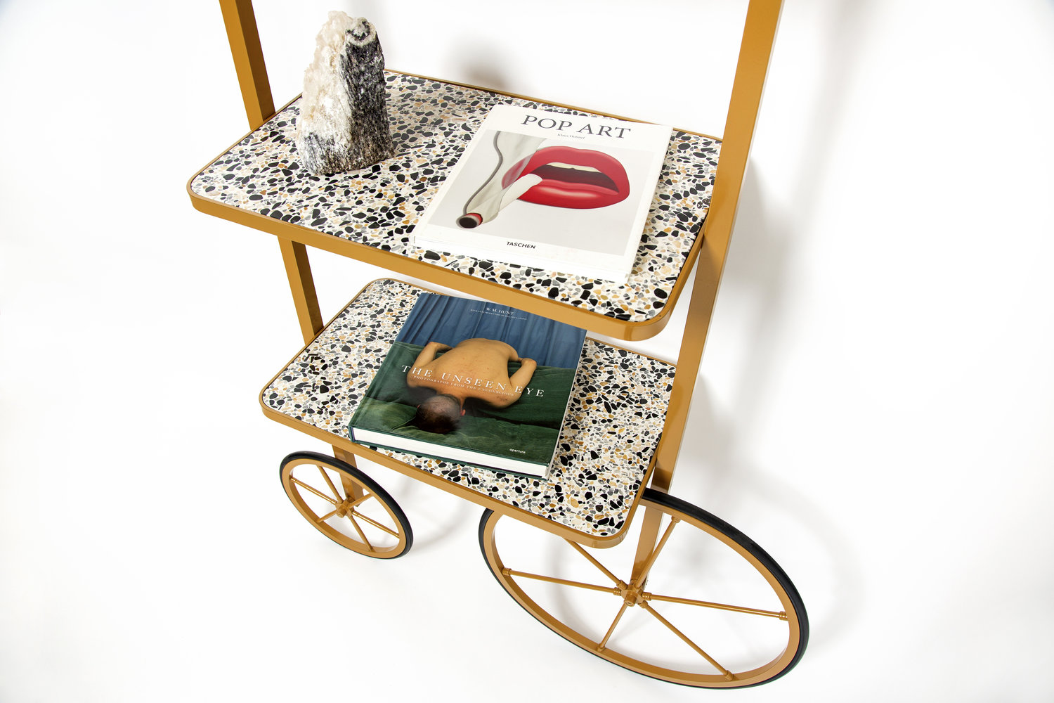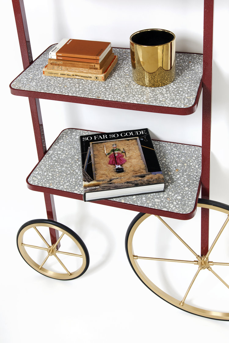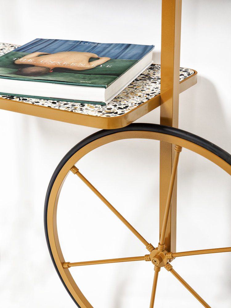 Cyclopedia的设计源于19世纪70年代的高轮自行车。 与大多数书架不同,Cyclopedia通过其便携式结构使自己与众不同。 这个独特的作品是一个图书馆和一个展示架,可以在空间周围的不同位置轮式和定位,以满足业主的喜好和目的。 新版Cyclopedia由波尔多彩色粉末涂层金属和灰白色水磨石组成,这款手工制作的单品必将为其任何表面带来不拘一格的氛围。