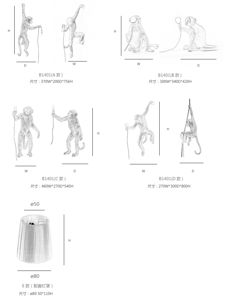 猴子吊灯 系列尺寸/示意图