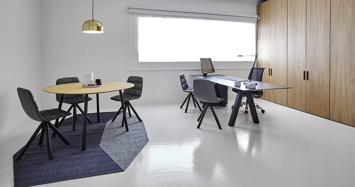 桌面有不同的尺寸,新的120厘米宽,也有不同的Viccarbe系列饰面和漆面。