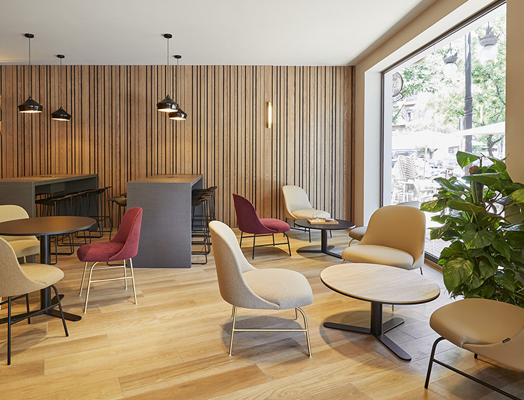 该系列是专为在餐厅,酒店或办公室以及住宅区等公共场所使用而设计和制造的,由椅子和凳子组成。