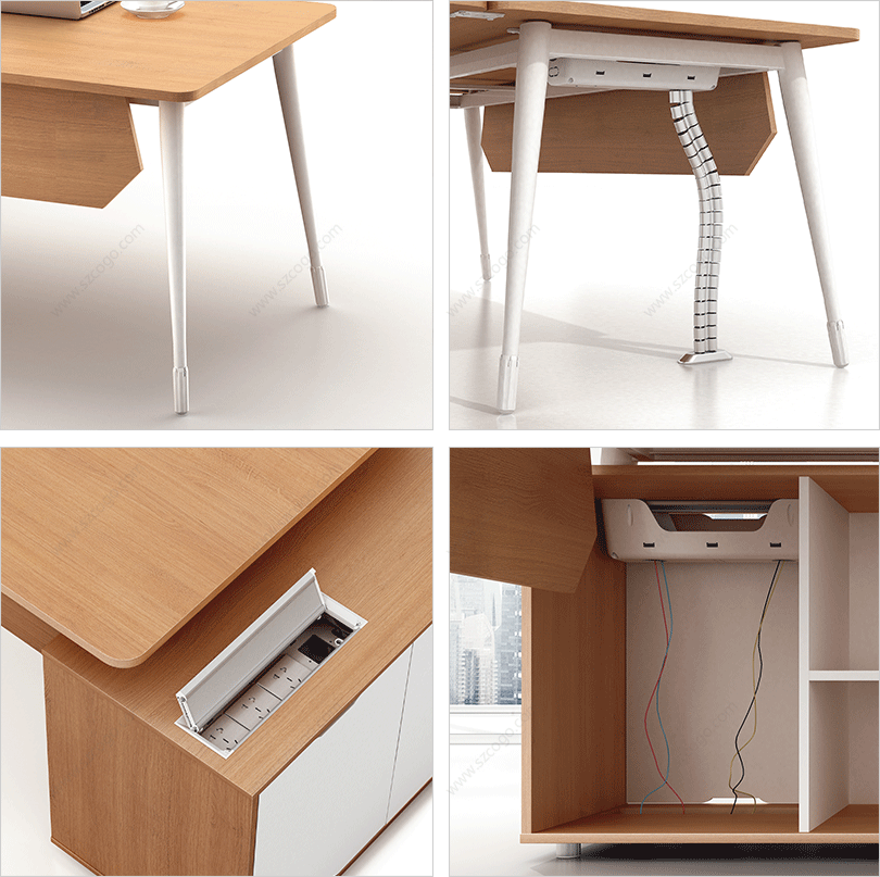 1、钢制脚架,实用高端大气; 2、整齐划一、人性方便的桌面铝合金过线系统。