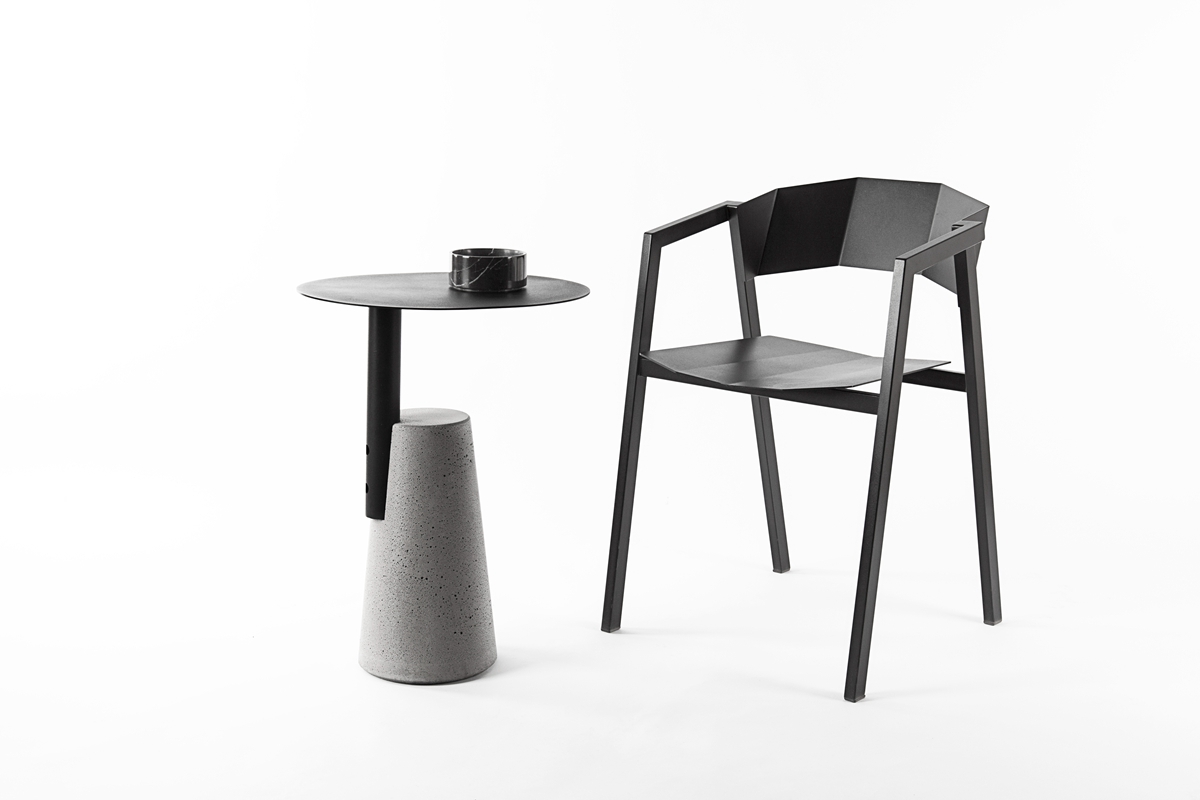 一竖加两竖,加三竖;红色搭黑色,搭白色,所见即所得,简单就是法则。用“0”形金属面板与水泥墩做一道减法,生产工序至简,功能至简,造型至简。简单才是需求,给设计做笔减法,去除复杂的修饰、多余的功能,凝炼欲望,简化造型,一切只为直白的使用与纯粹的美。在加工和组装工序上的简化,能有效节省生产成本。作为边桌,具有很强的功能性目的,贴合现代居室的简约理念,没有过多的干扰性,适用于现代家居用具的各种组合搭配。